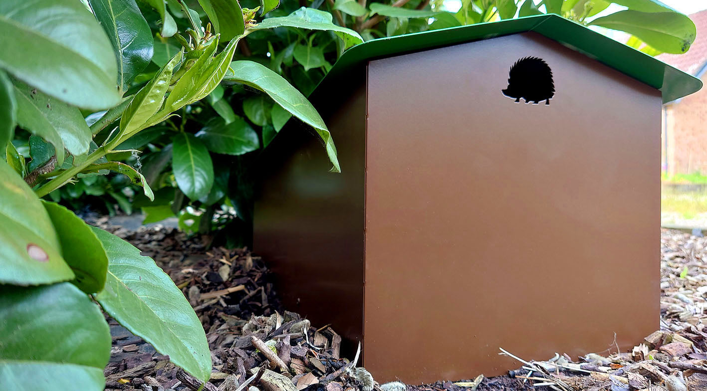 With a mix of green and brown powder-coated finishes, the house blends easily into natural surroundings like bushes, hedges and shaded corners of your garden. The charming hedgehog-shaped cut-out on the side adds a unique design feature while allowing airflow and light inside. It also makes a brilliant gift for any animal lover or keen gardener.