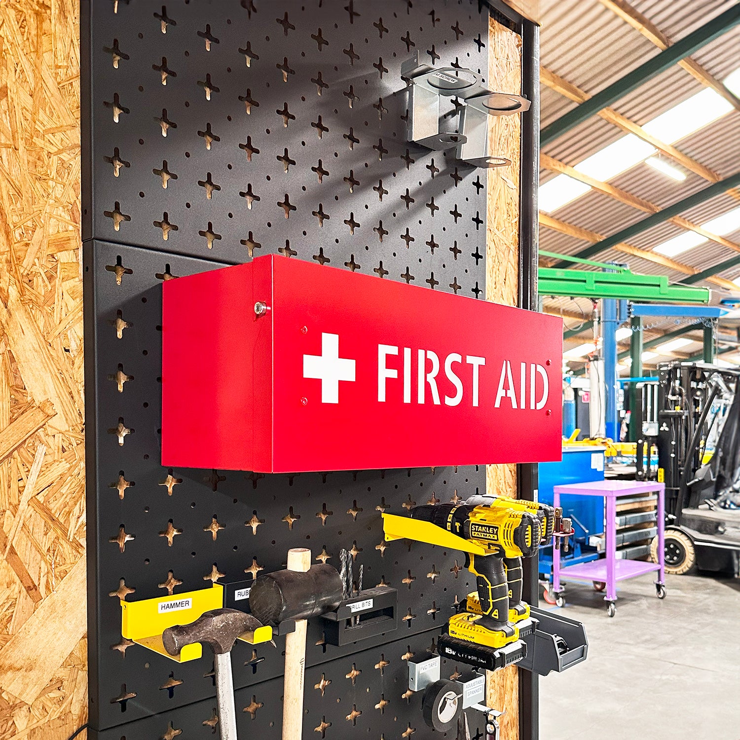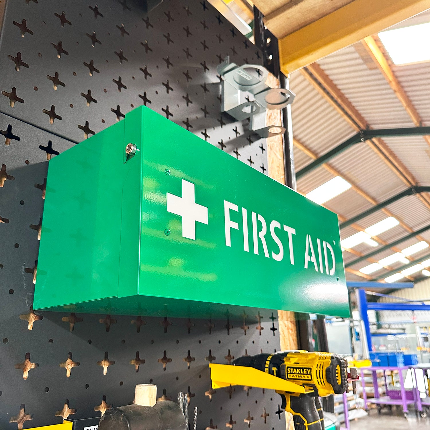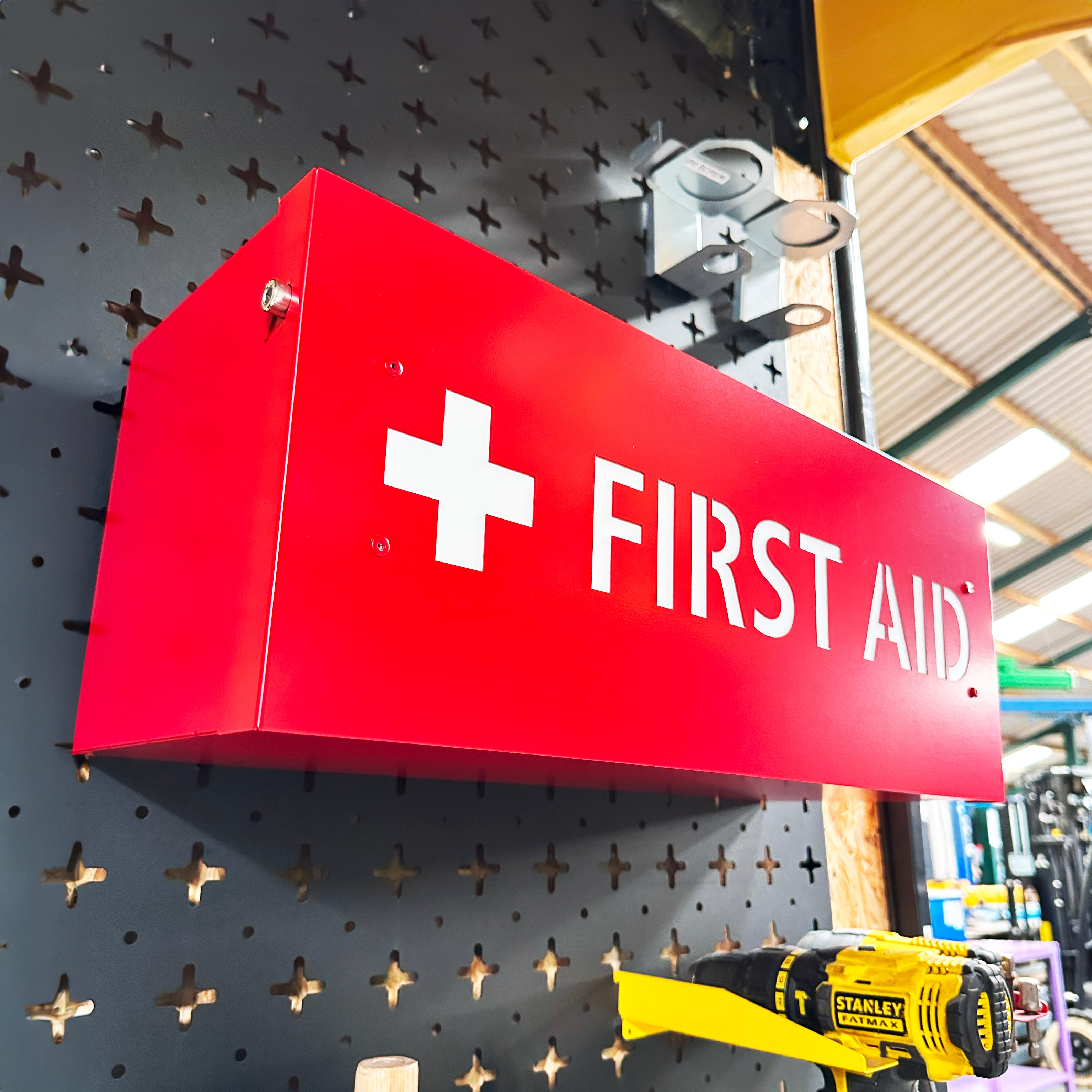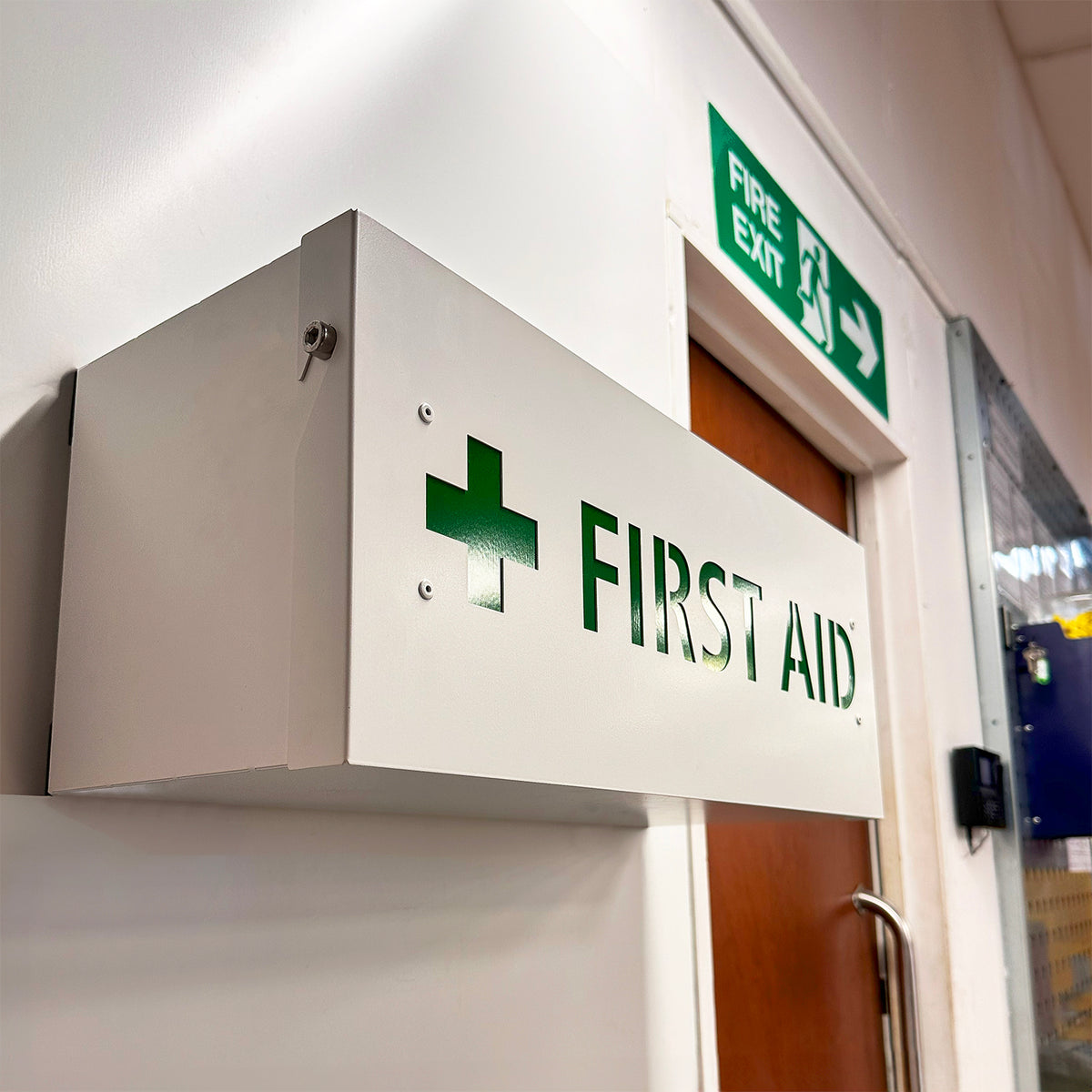 Keep your First Aid supplies safely secured in our specially designed wall mounted first aid cabinet. First Aid knowledge and supplies are essential in workplaces, and this cabinet provides a well-marked, easy to identify solution for storing all supplies. From companies following 2-Second Lean who need somewhere to manage inventory to an office just needing a larger space for First Aid supplies, this First Aid box is an essential addition to any business.