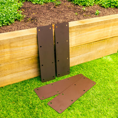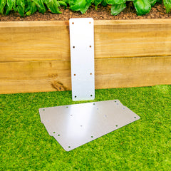 Specifically, our 2-Tier brackets are suitable for use in constructions where sleepers will be stacked on top of one another to make taller raised beds or path edging. The larger size of the plate means it can be used to screw up to 4 sleepers together at once!
