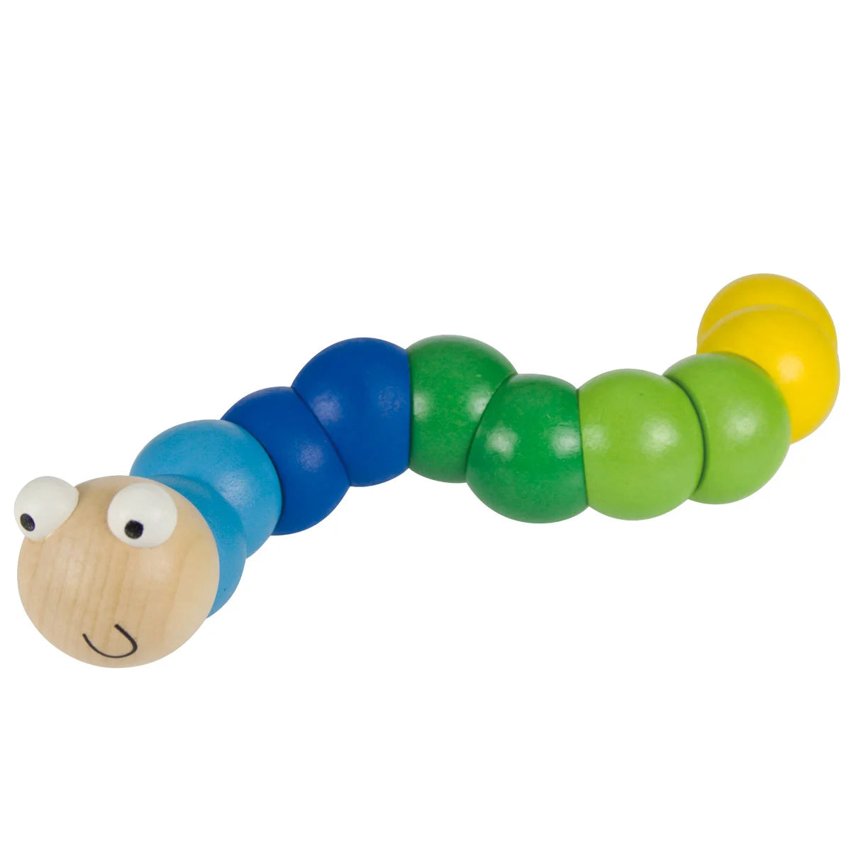 Brightly coloured and very wiggly, these wooden Wiggly Worms are perfect for keeping little hands busy. Thanks to their clever joints, these worms can shuffle along in lots of different directions, making them a fascinating toy for young children. Suitable for tots aged 1+ years, these wiggly worms are designed to support hand-eye coordination, fine motor skills, and understanding of movement and colours.