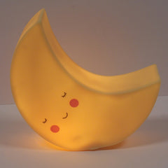 Reassure your little ones at night with the adorable Little Moon Night Light. Shaped like a crescent moon and designed to sleep gently, this light provides a warm, comforting glow to help your child feel safe and secure during their sleep. Lit by a warm white LED, this sweet yellow moon remains cool to the touch and, being battery-operated, can be placed anywhere in your child's room or nursery.