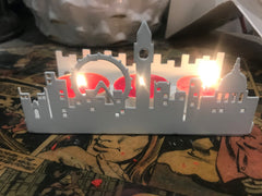 This London skyline-themed Tea Light and Candle Holder is suitable for storing up to 3 tealights or candles. The front panel depicts the London Skyline, making it a great little trinket for anyone who loves the capital or has lived there. When the candles are lit, in darker settings the lights will shine through the gaps of the design, looking like an illuminated London late at night.