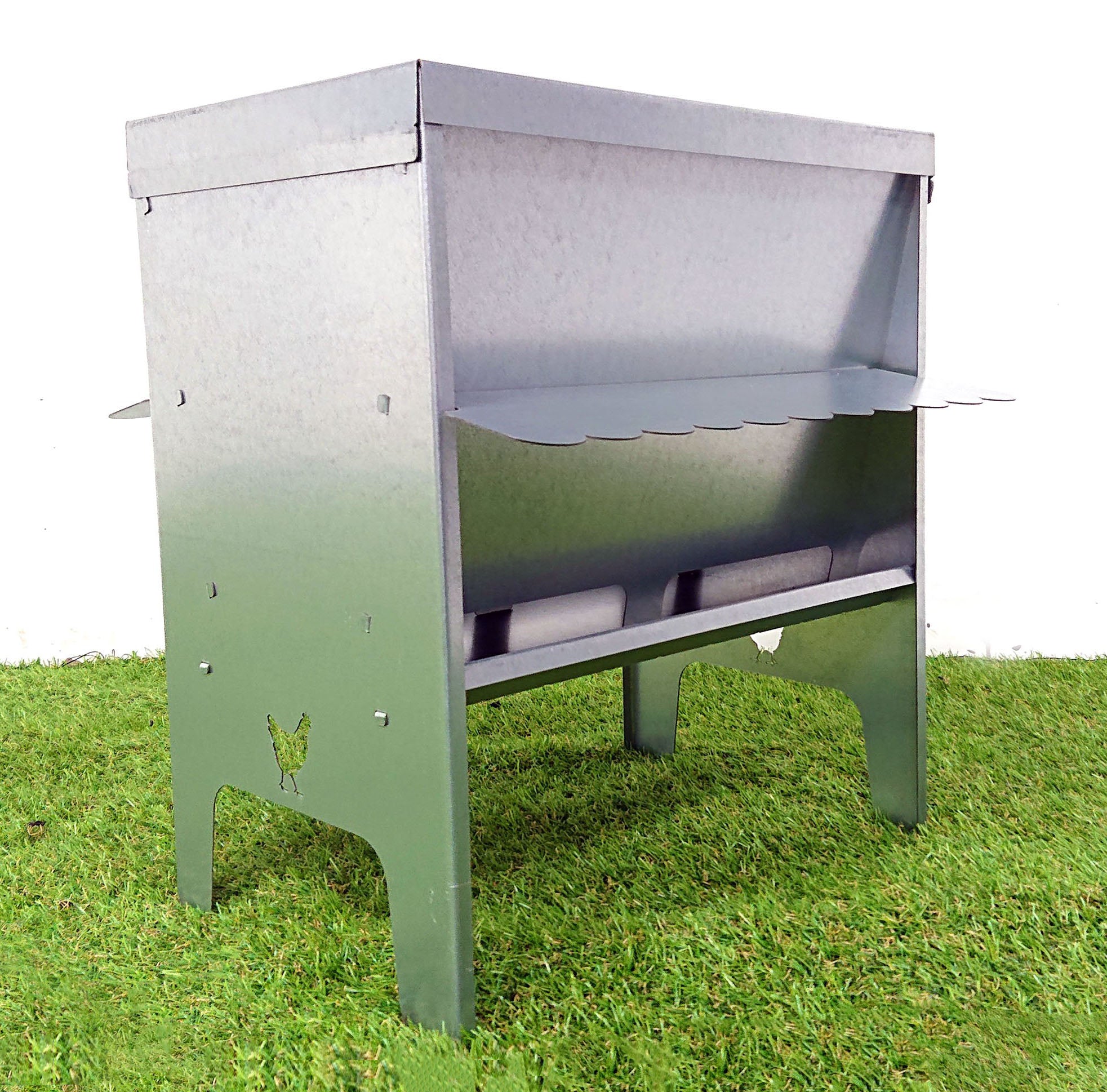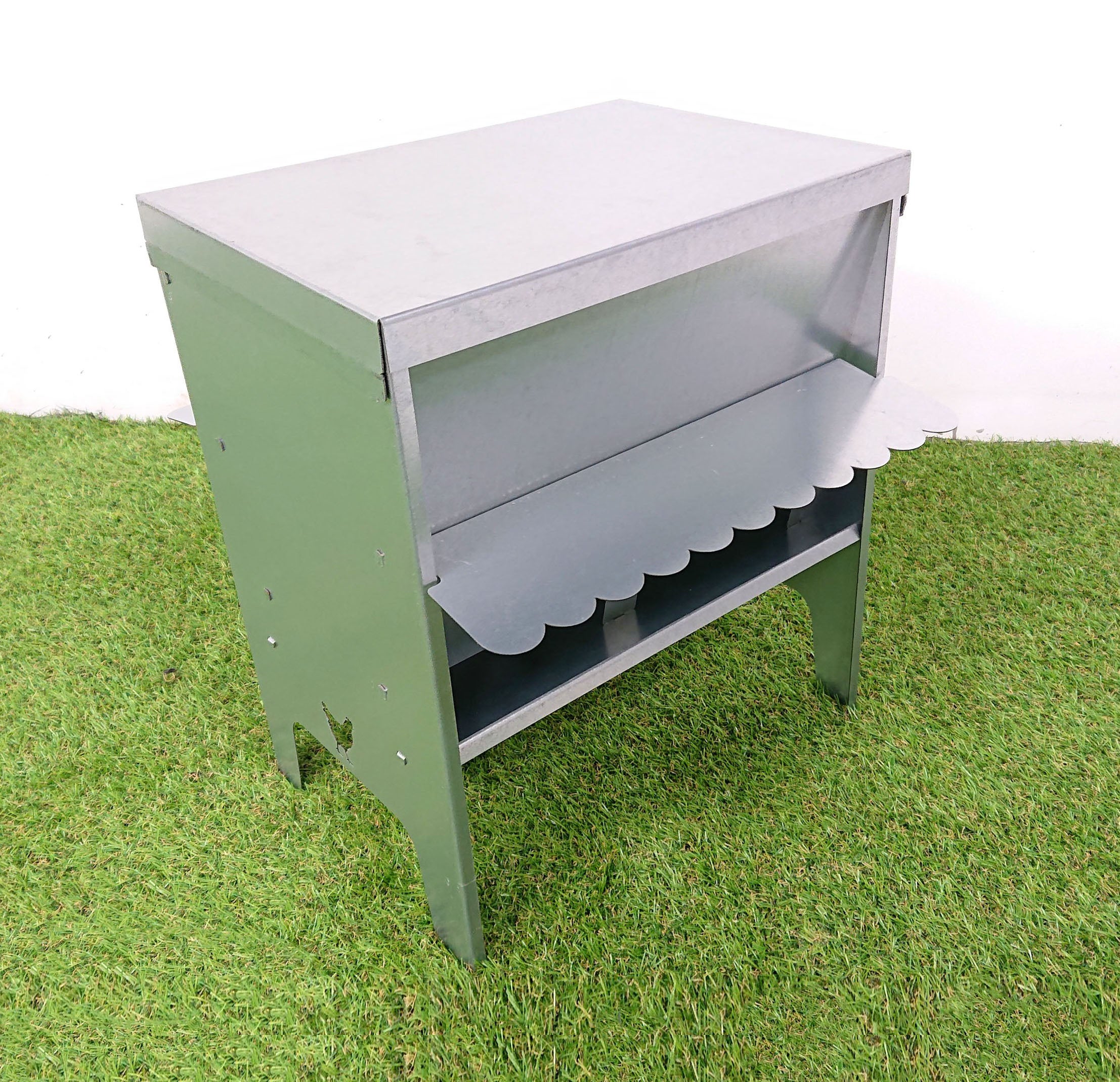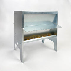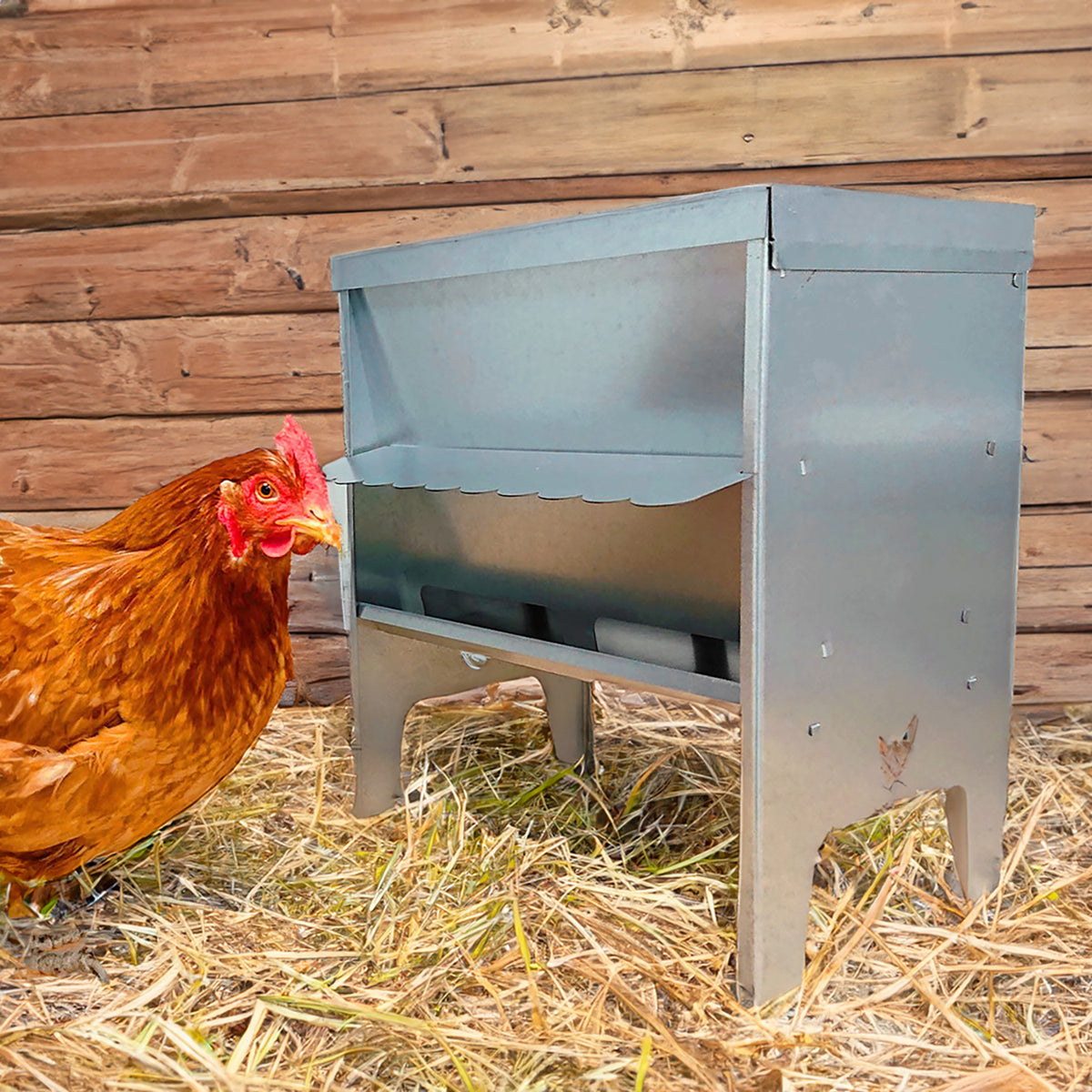 This Chicken & Poultry feeder is made from Galvanised Steel to ensure a rust-proof, durable and water-resistant design. The product was designed to ensure rain and water cannot make the food wet or damp, with a roof over the food at all times. Even in the wettest and most sudden downpour, this Poultry Feed Hopper will ensure that the food stays dry and edible for all of your chickens and poultry.