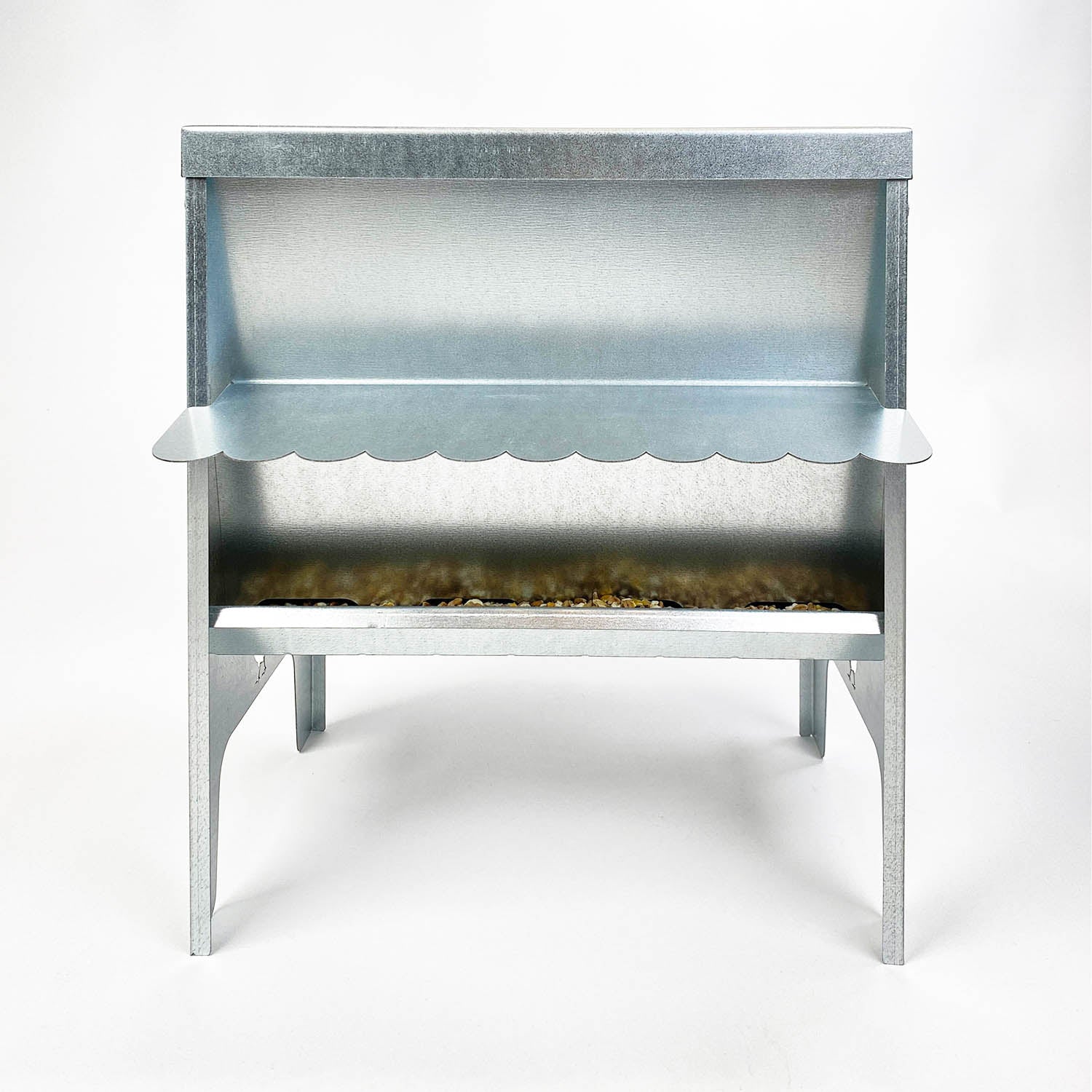 The Chicken Feed Hopper is made from British galvanised steel. This ensures strength and durability to last your chickens many years to come. The smooth finish of the steel is easy to clean should there be any build-up of dirt or mess.