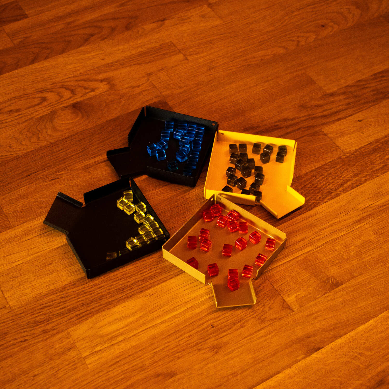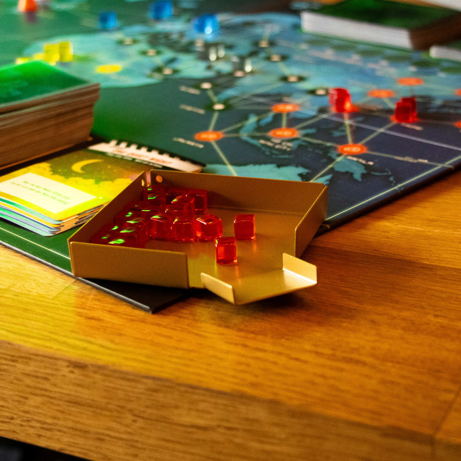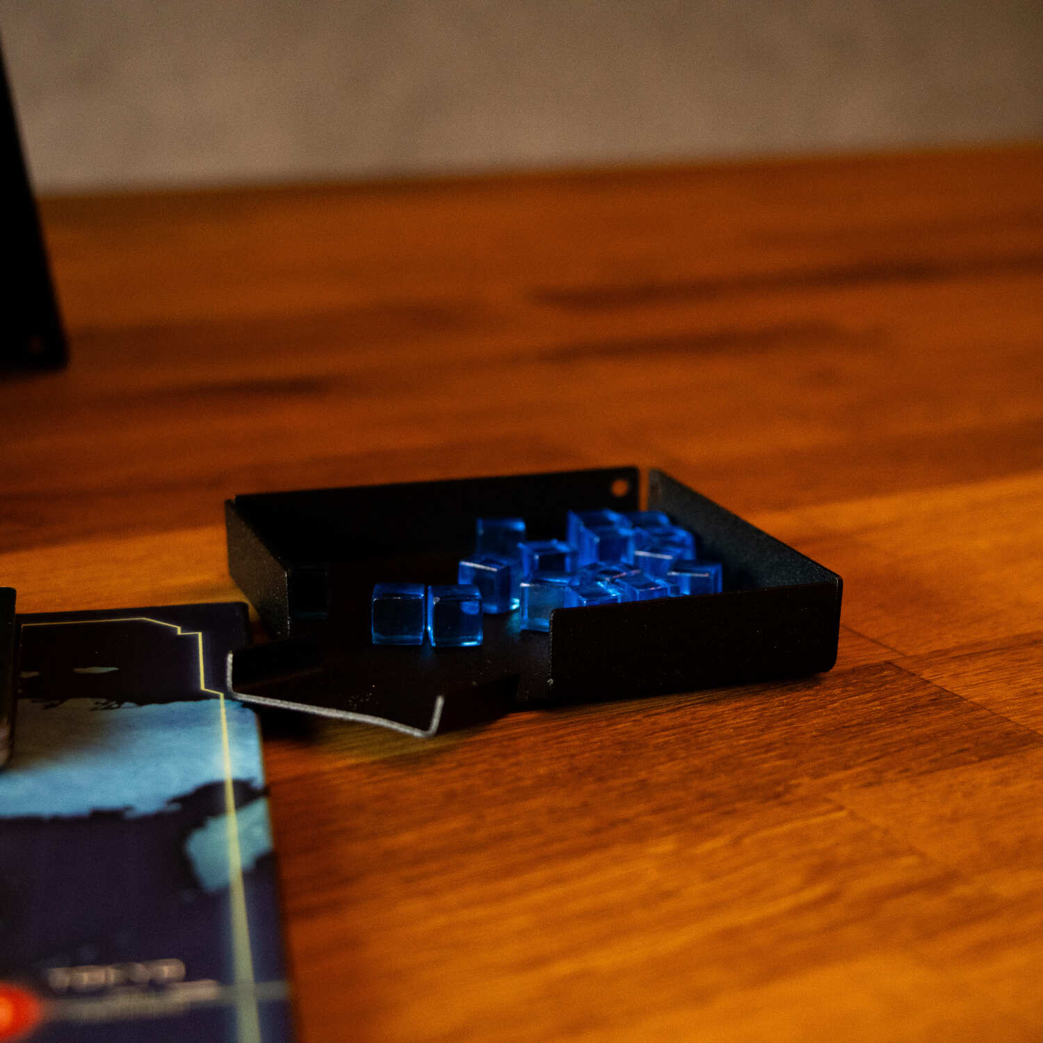 Designed with convenience in mind, the tray features a built-in scoop corner. At the end of the game, simply tip the tray and scoop the board game pieces, whether it be cubes, tokens or counters, directly back into the box. No more chasing bits around the table or trying to cup your hand to grab awkward pieces.