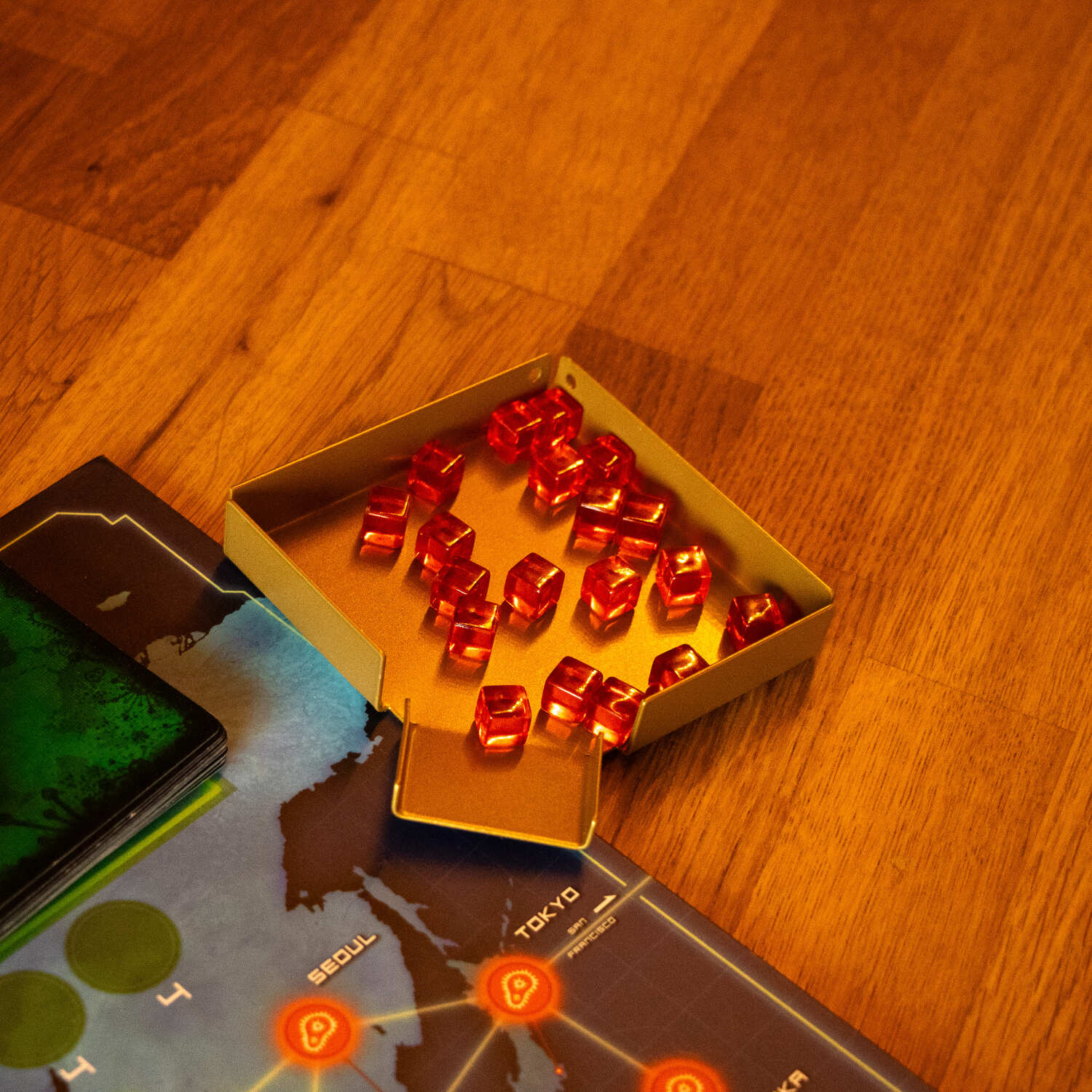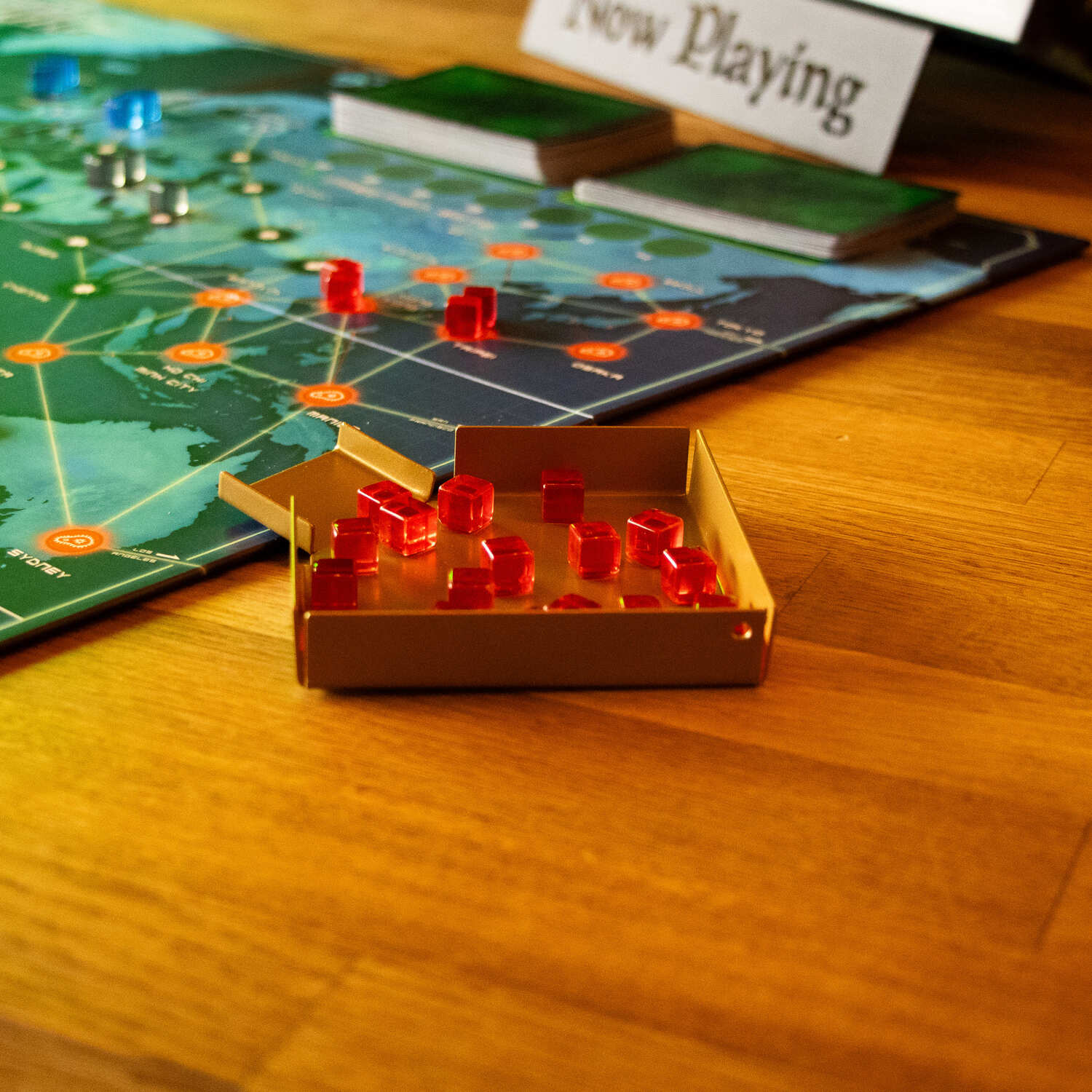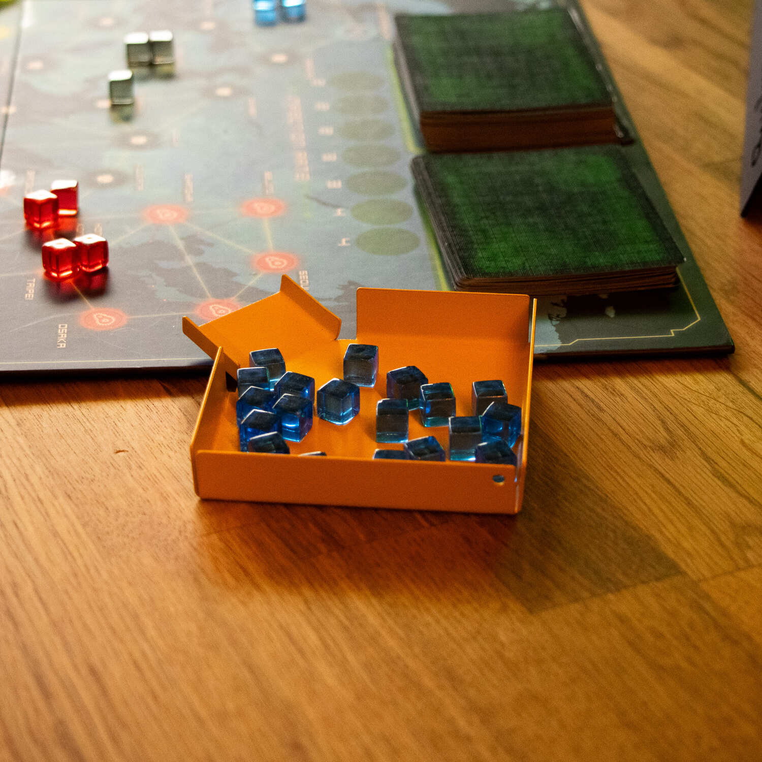 Designed with convenience in mind, the tray features a built-in scoop corner. At the end of the game, simply tip the tray and scoop the board game pieces, whether it be cubes, tokens or counters, directly back into the box. No more chasing bits around the table or trying to cup your hand to grab awkward pieces.
