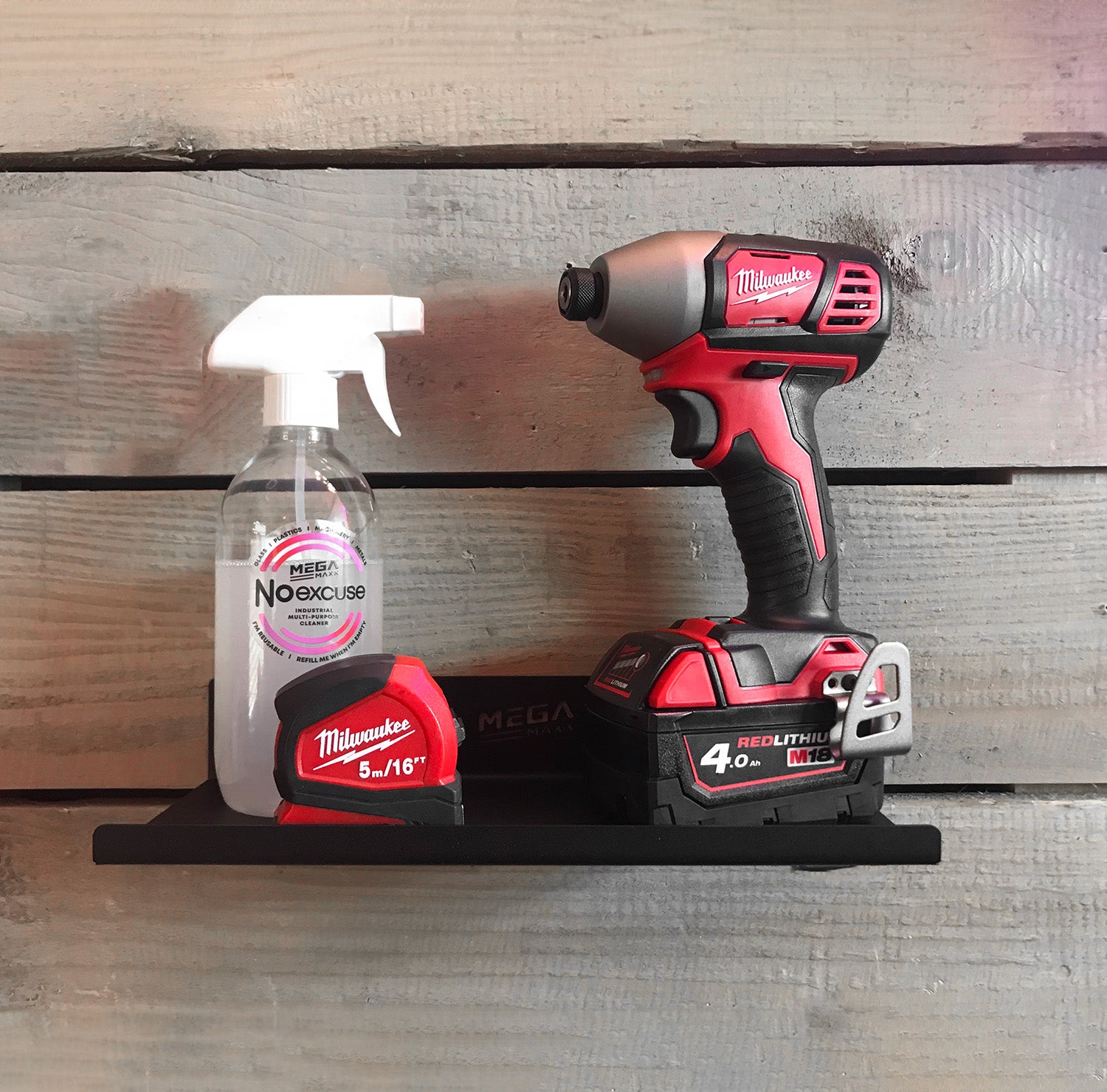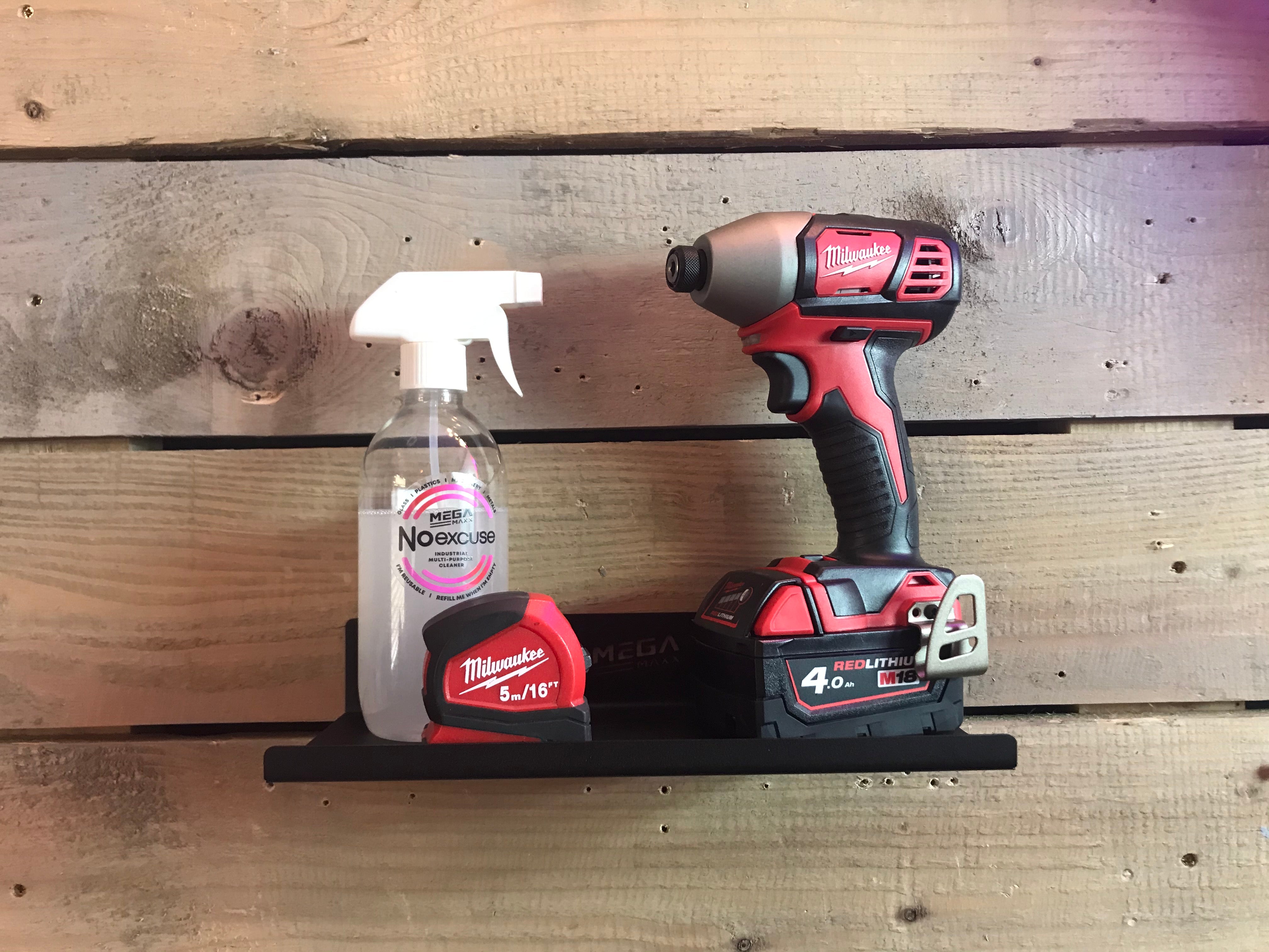 Made from heavy-duty British Steel, the shelf is capable of holding heavier items. It can easily hold power tools and larger cleaning supplies. It is powder-coated black for a cool finish which can easily be wiped clean in the event of spillages or dust.