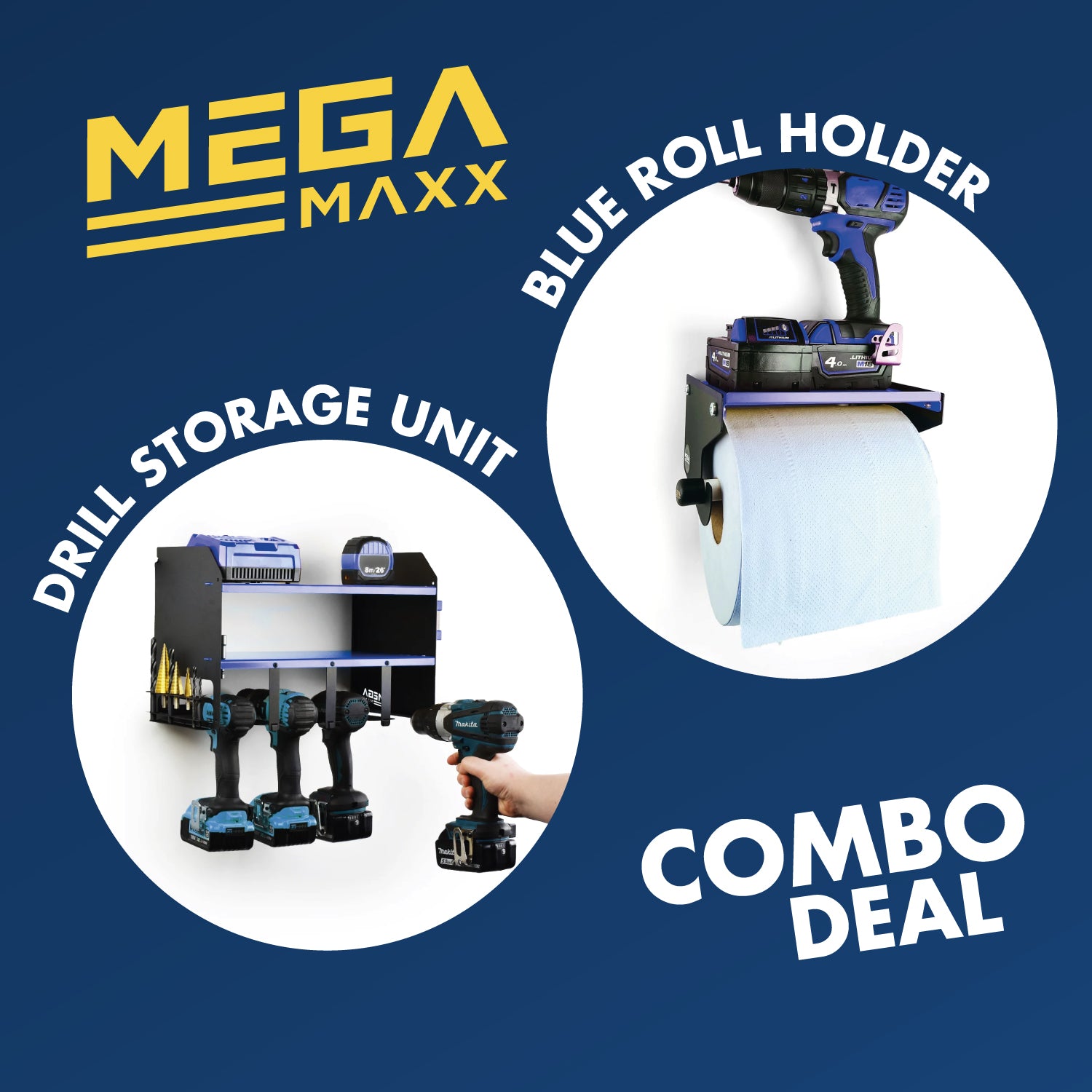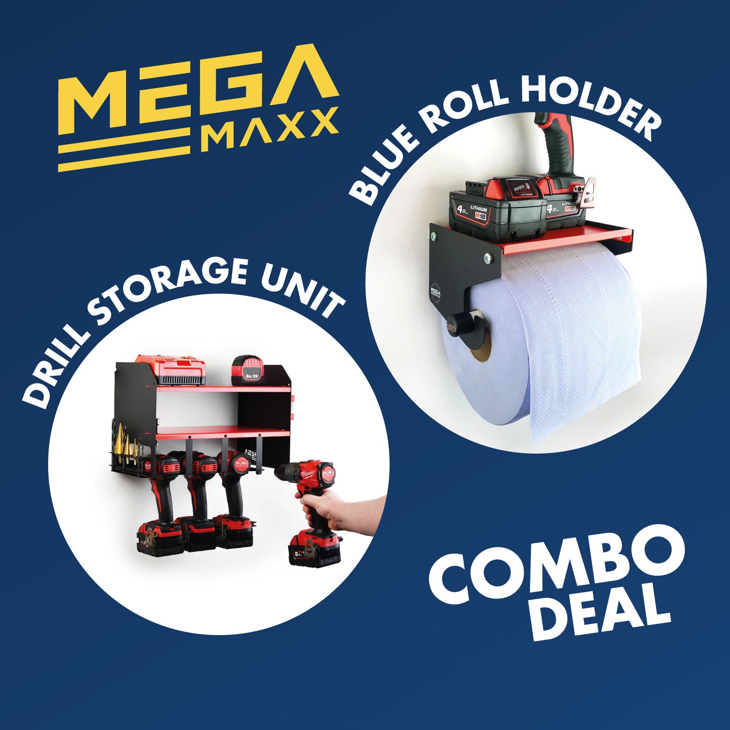 This MegaMaxx combo deal is exclusive to Indoor Outdoors. Choose a colour of Power Tool Storage Unit and you will get the accompanying Blue Roll Holder. You can even choose to add some Blue Roll to the order to really get your workshop kitted out. Great for small businesses looking to expand their operation, for businesses just starting out or even just for bringing some order to your workshop, shed or garage.