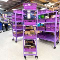 Made from heavy-duty British Steel, this trolley is designed to last. It is durable and hard-wearing, and able to stand up to the rough and tumble of factory life. Each trolley comes with a durable powder-coated finish. This not only gives it an appealing look, but also adds a hard-wearing outer to the trolley. It is available in 8 colours, so a perfect choice if you are looking to colour-coordinate your working area. You can also select our custom colour option for full control of your racking's appearance.