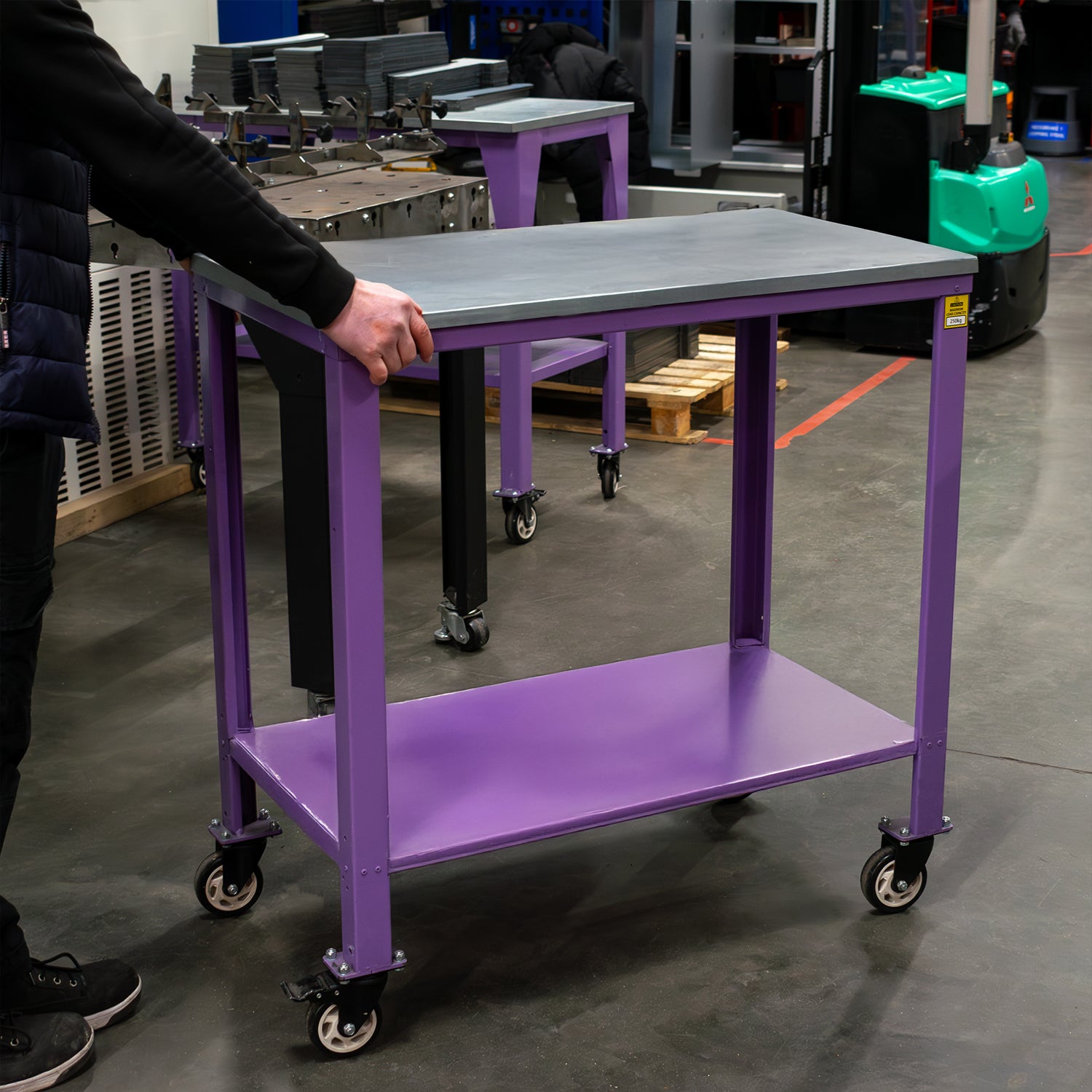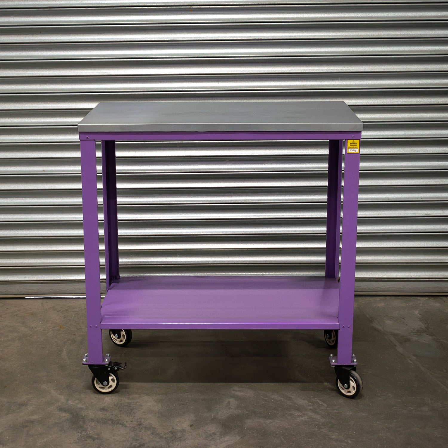 This industrial trolley arrives fully assembled, ready for immediate use. The design features a robust frame capable of handling extreme loads up to 500kg. Its heavy-duty castor wheels include two with brakes, ensuring stability during use. The reinforced top, made from uncoated galvanised steel, provides an extra layer of durability while preserving the trolley's premium powder-coated finish.