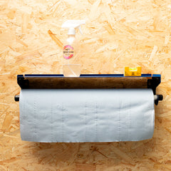 The product provides a simple method for rolling off and dispensing Couch Roll. Simply pull down on the roll, hold onto the end and break off the sheets you need. There is a handy shelf above should you need to store any supplies or equipment above.