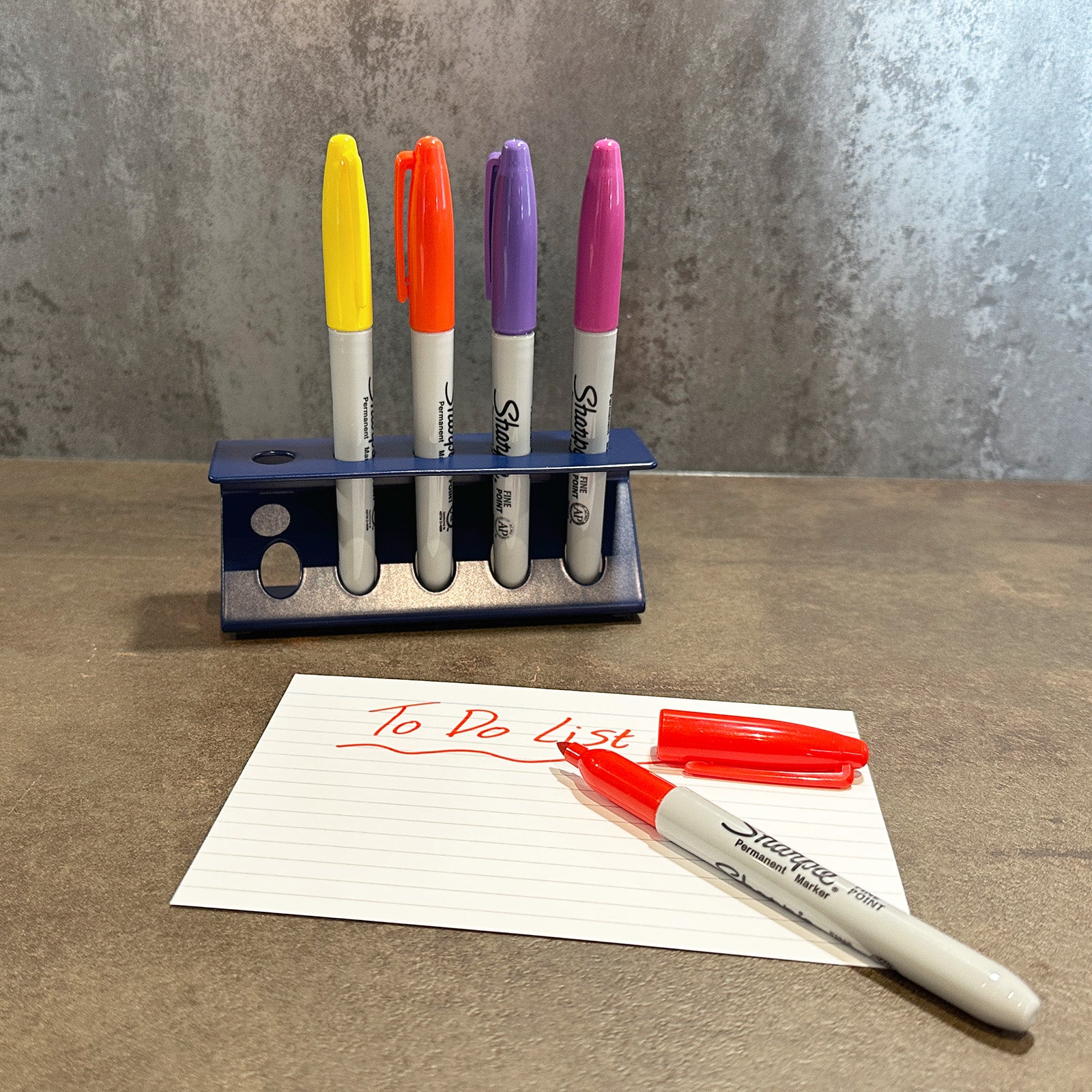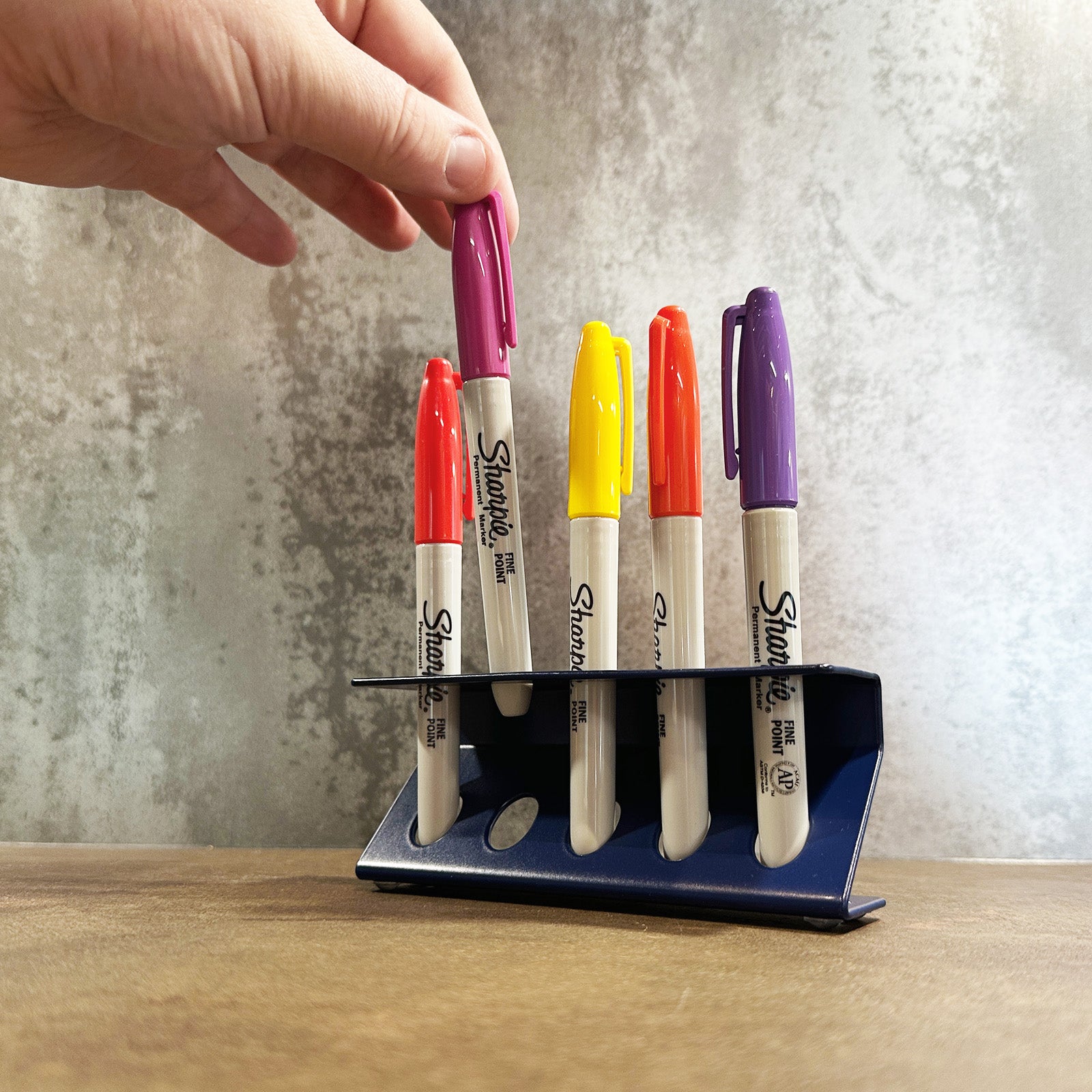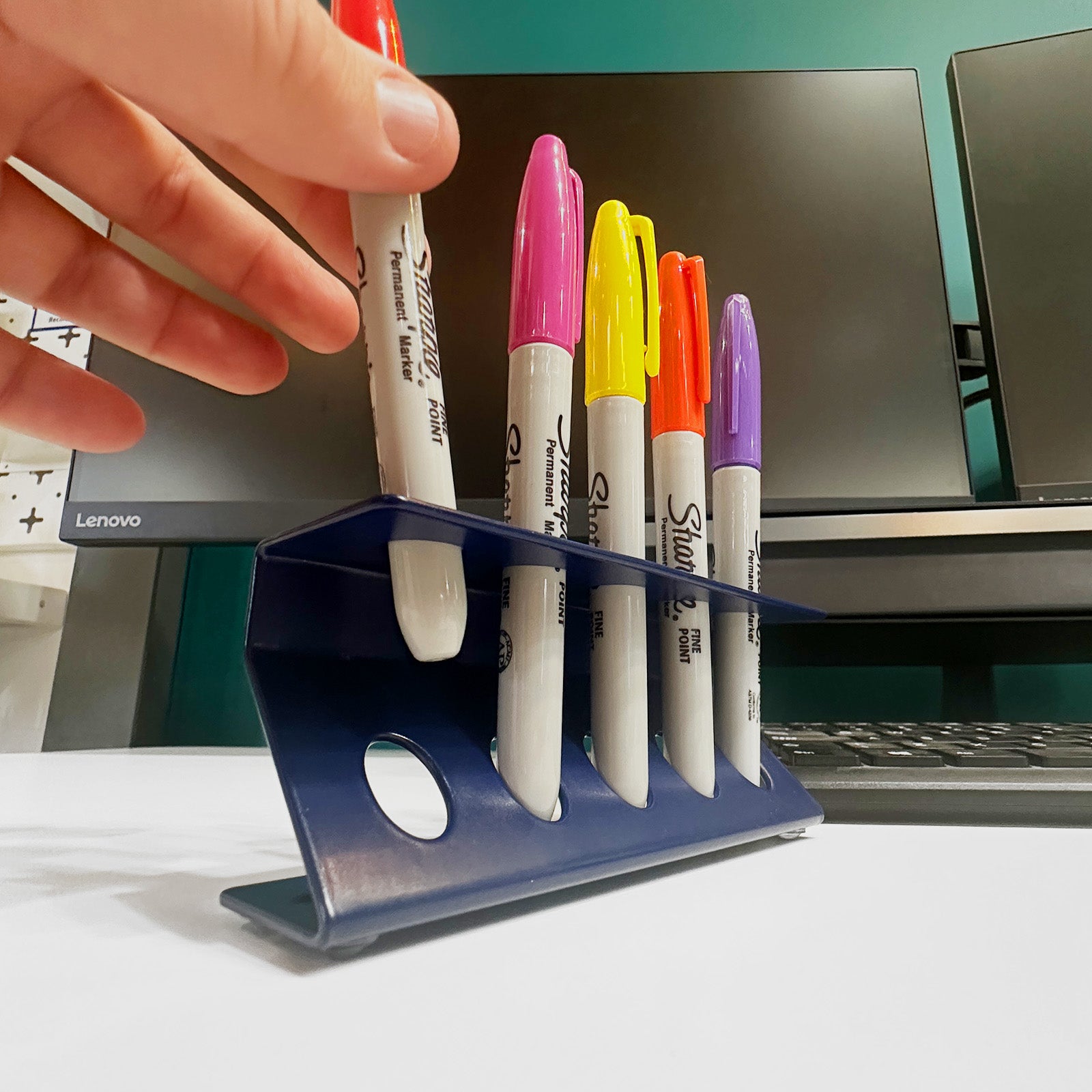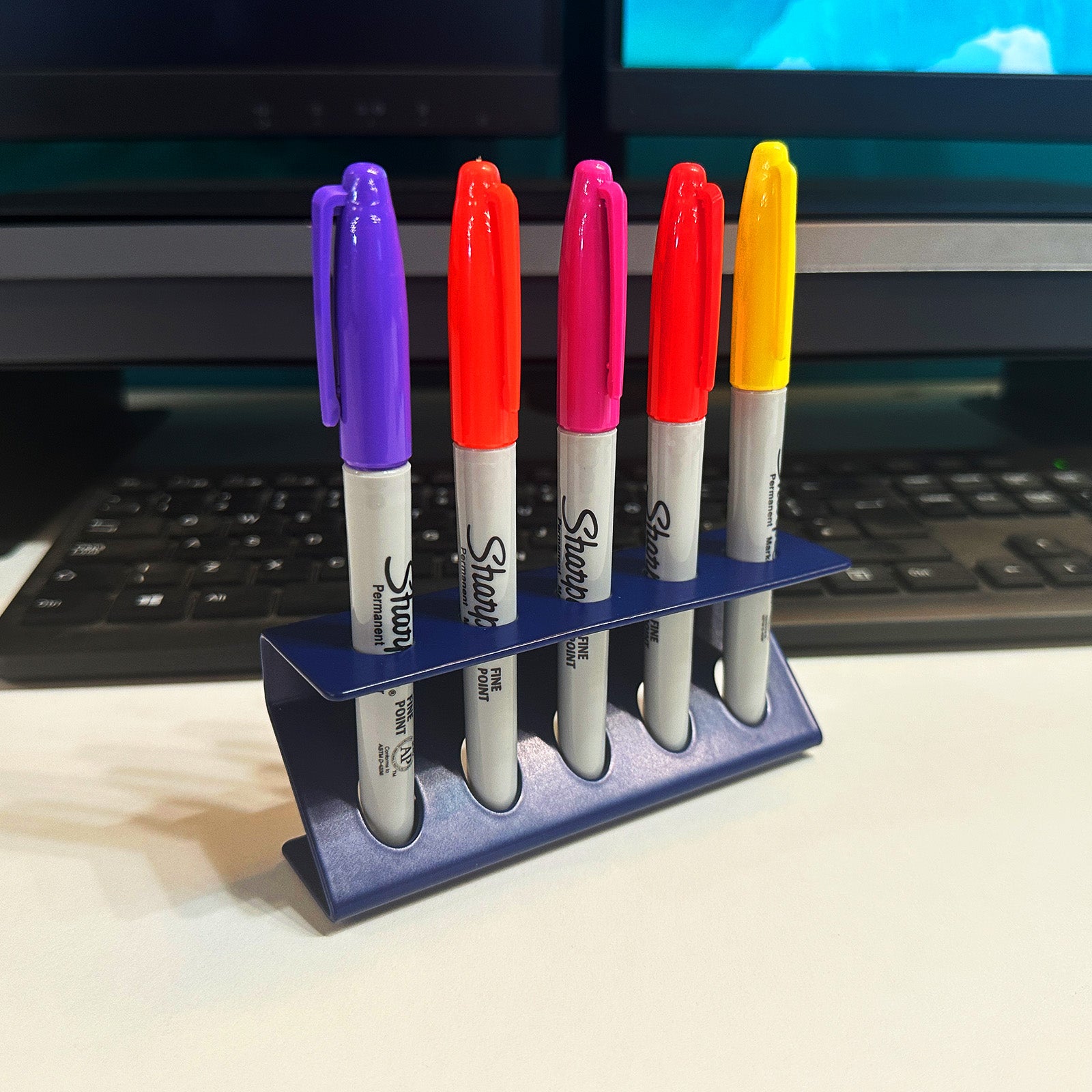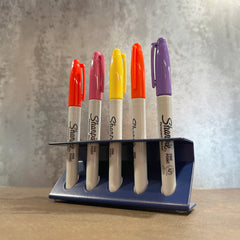 The unique Z-shaped design on the desktop pen organiser doesn’t just look great – it also adds extra strength to the structure. Each slot is 11.5mm wide, making it suitable for standard pens, markers, Sharpies, and other thick writing tools. Crafted from British steel and powder-coated in your choice of finish, this organiser is made to last and built to handle daily use.