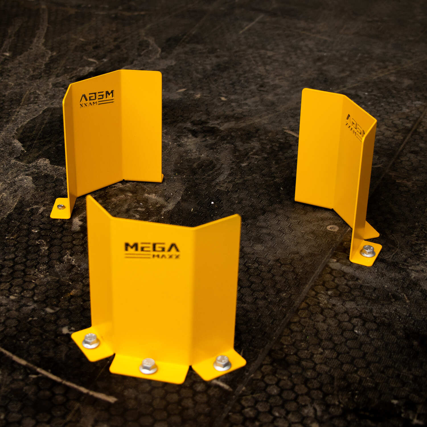 Each bracket features a three-sided form with 135° folds, creating a snug grip around curved items. This makes them perfect for storing buckets, dust extractors or paint cans – keeping them upright and stopping them from rolling around or tipping over during transport. The design allows you to space the brackets as wide or as narrow as needed to match the item you want to secure.