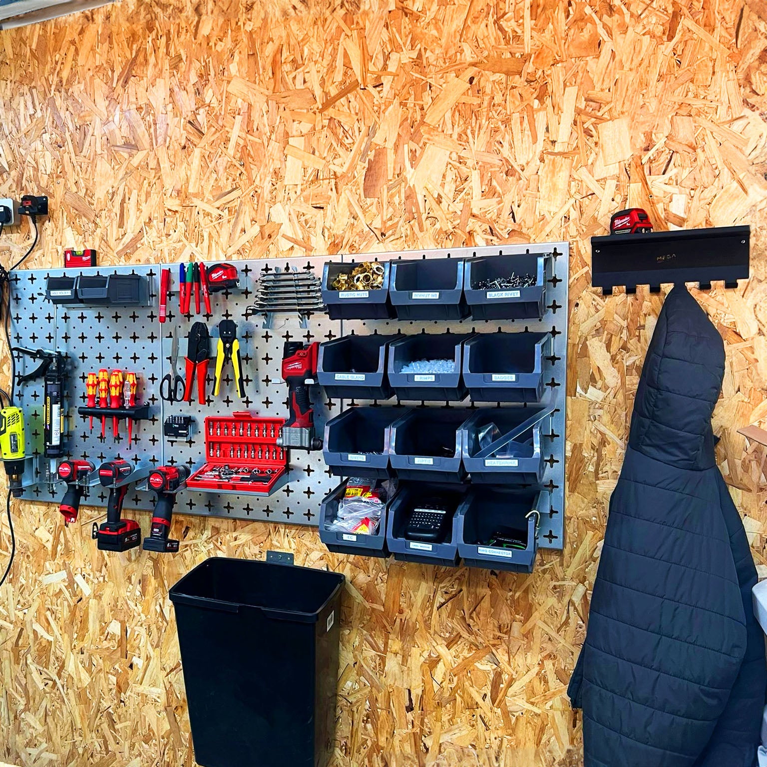 Featuring a sleek textured black finish, this shelf adds a touch of professionalism and sophistication to your working area. The black colour not only complements the aesthetic of industrial settings, garages, sheds, and workshops but also helps conceal dirt and grease, ensuring a clean and polished appearance.