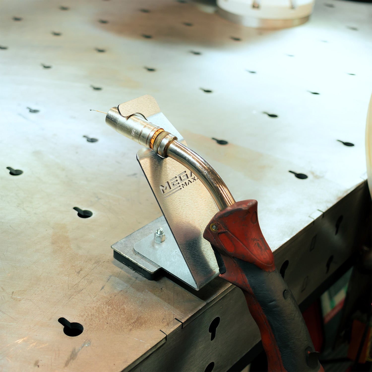 This desk-mount and table-mount holder and stand will allow you to securely store your MIG Welder when it is not in use. The bracket can be bolted down if your table has bolt holes, or can be magnetised to the table using the provided M6 Magnet.