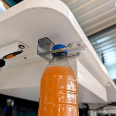 Installation is straightforward, requiring just one screw (not included). The bracket is easily mounted to the underside of your desk, saving valuable desk space and keeping your bottle securely in place. With a 27mm gap for the bottle neck, this holder fits most standard UK drinks bottles, including water bottles, soft drinks, and squash bottles. The angled lip at the edge provides additional security, preventing the bottle from slipping out.