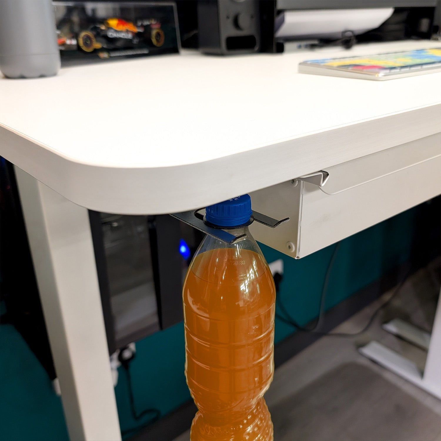 The MegaMaxx UK™ Under-Desk Mount Drinks Bottle Holder Bracket is the perfect solution for creating a clutter-free and organised workspace. Designed to hold a single drinks bottle securely under your desk, it keeps your hydration within reach while avoiding the risk of spills or the bottle obstructing your workspace. Ideal for home offices, workstations, or gaming setups, this bracket ensures practicality and convenience.