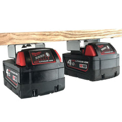 These brackets are perfect for holding a power tool battery. Designed with the Milwaukee M18 battery in mind. It's suitable for a variety of batteries from multiple brands. Wall mount the holder , and slot your battery in place.