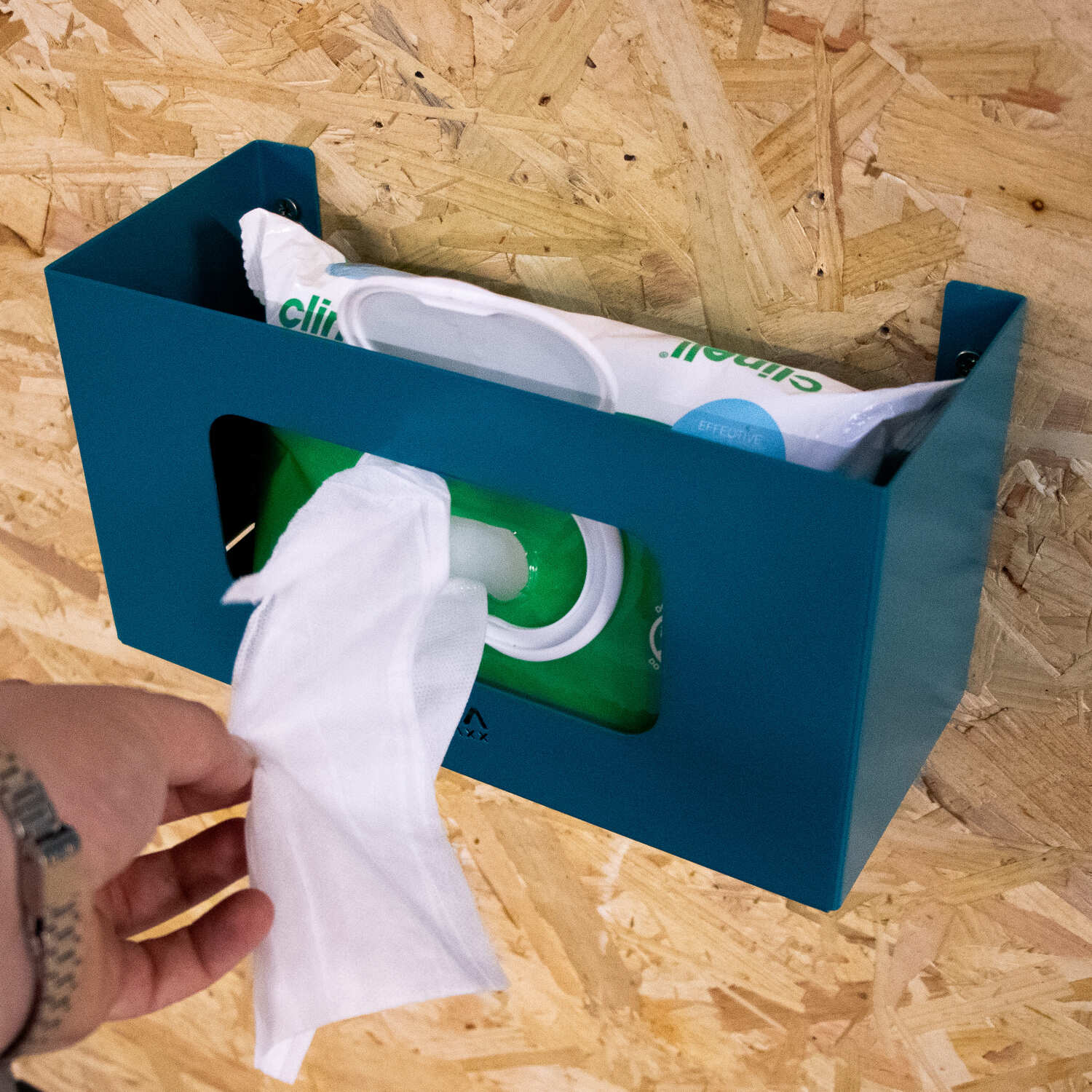 This wall-mounted wipes dispenser is designed for fast, easy access to cleaning wipes in busy environments. Ideal for workplaces where hygiene matters most – including medical settings, food prep areas, gyms, salons and workshops – it keeps your wipes visible, within reach, and off your worktops.