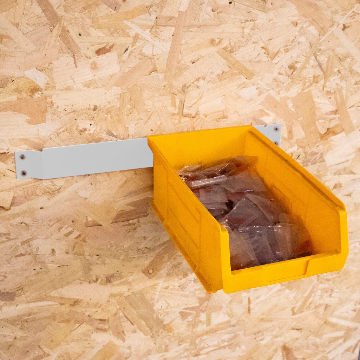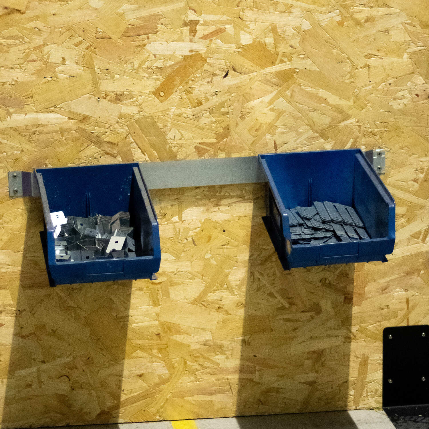 These rails are designed and made in the UK using quality British steel. They offer a neat, strong and reliable way to keep storage boxes close to hand. The low profile shape and simple hook on design make this a practical upgrade for any workspace.