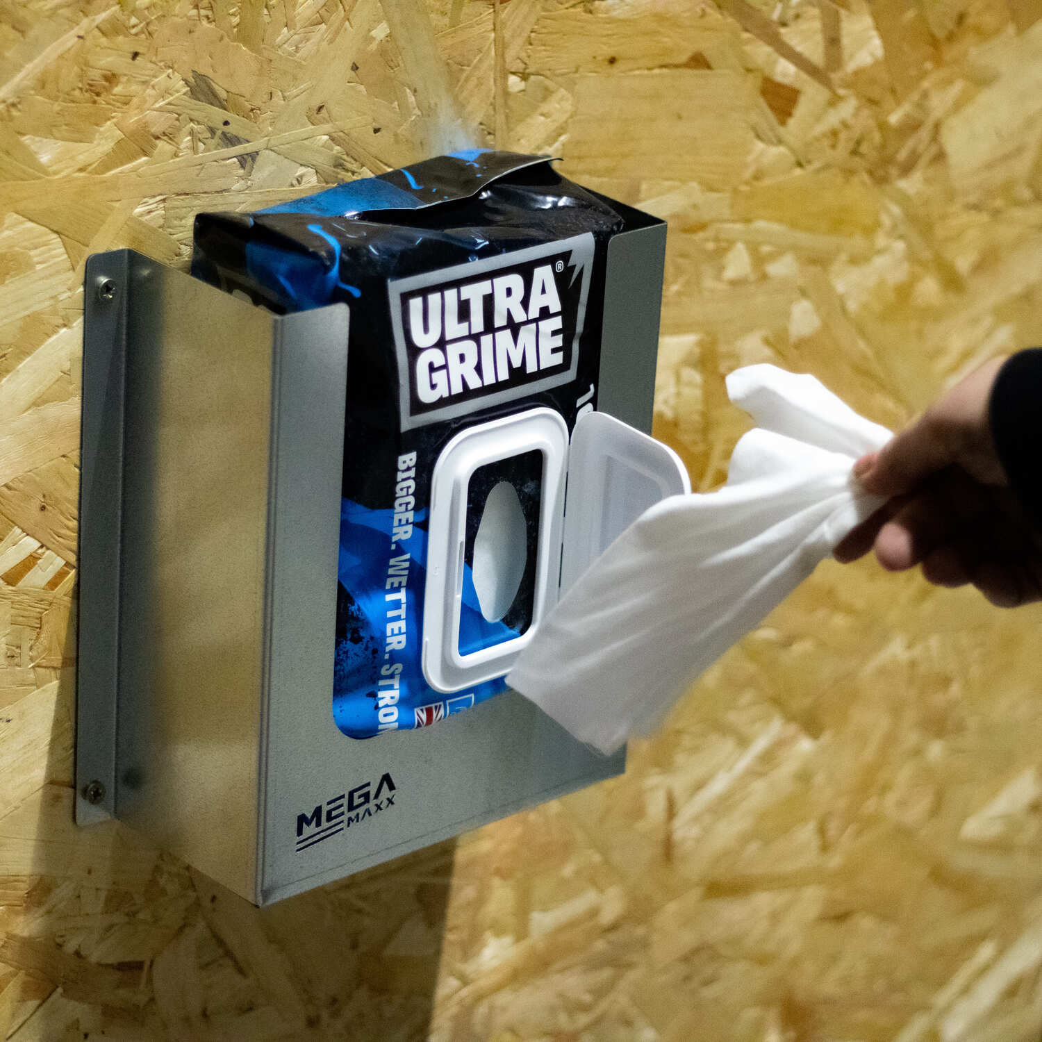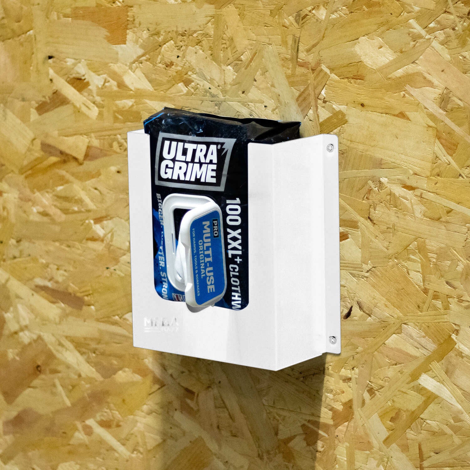If you rely on XXL heavy duty cleaning wipes for tough jobs like removing grease, paint or grime, this wall-mounted holder is the ideal storage solution. Designed to keep bulky wipe packs off your worktops, this unit makes accessing wipes quicker and easier while freeing up valuable surface space.