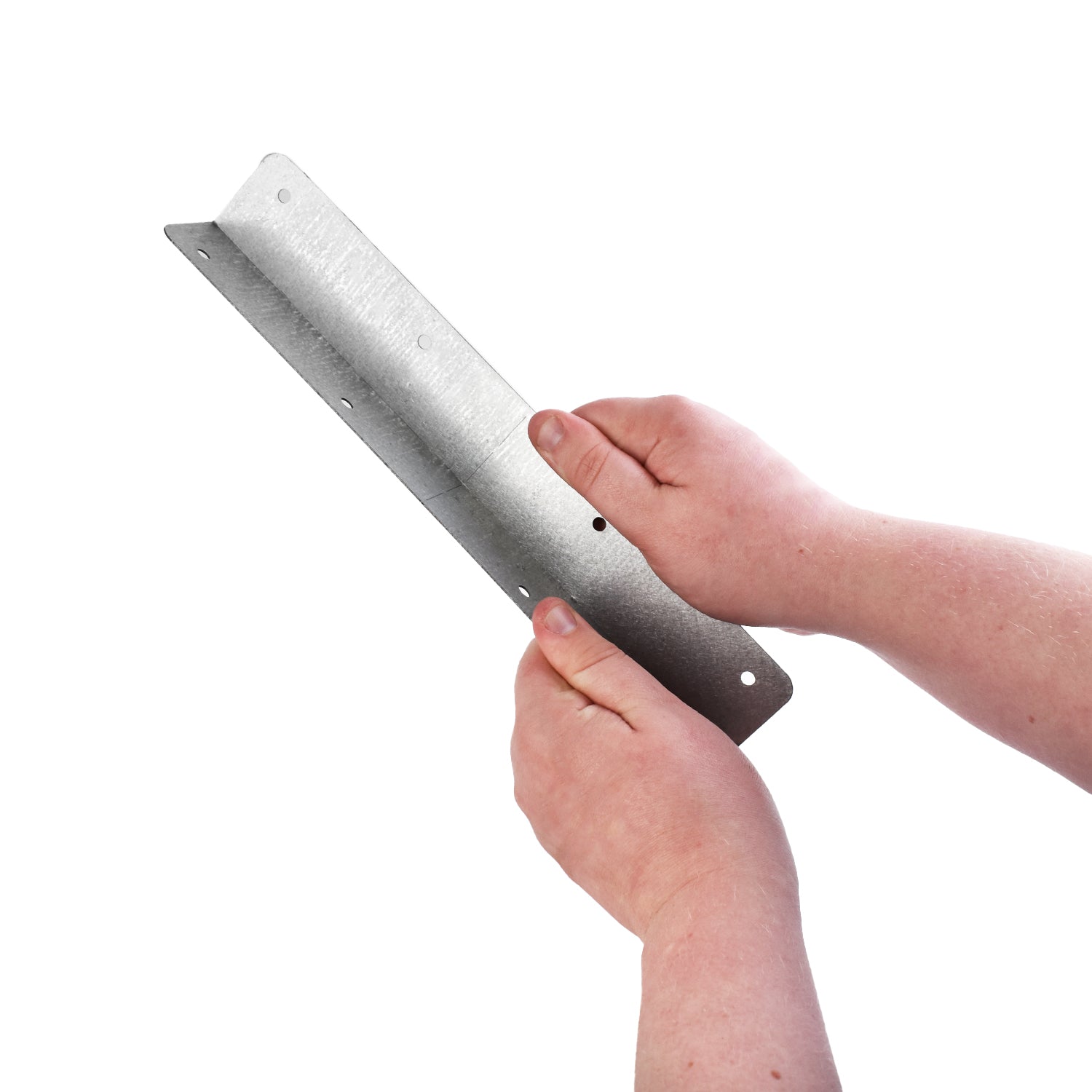 Our unique design of features 2 large corner support brackets all stored on one sheet of metal. This makes storage easy as the flat sheet can fit in your toolbox, on a shelf in your garage or even in a drawer. Break them off when you need them and store the rest for later. No bags of fixings, no open boxes, just the sheet itself.