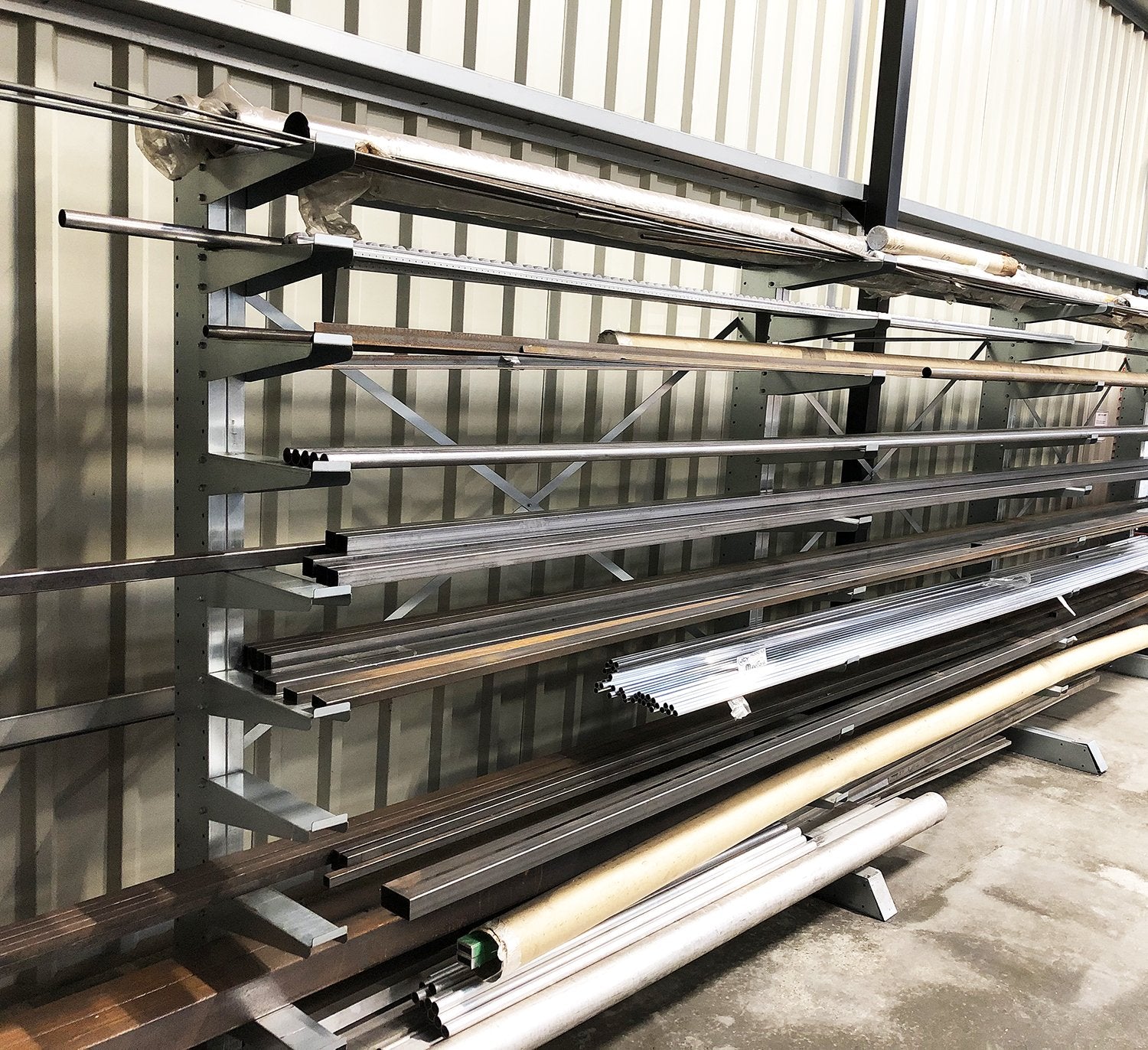 Store various metals, timbers and more with ease using the fully modular and adjustable shelving arms, stack how you want! It's a great choice for storing metal and plastic tubing, as the arms can hold long lengths of pole, and the small lips at the edge of each arm ensure that material cannot roll off.