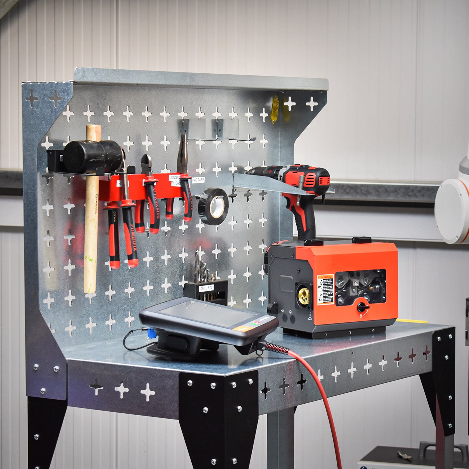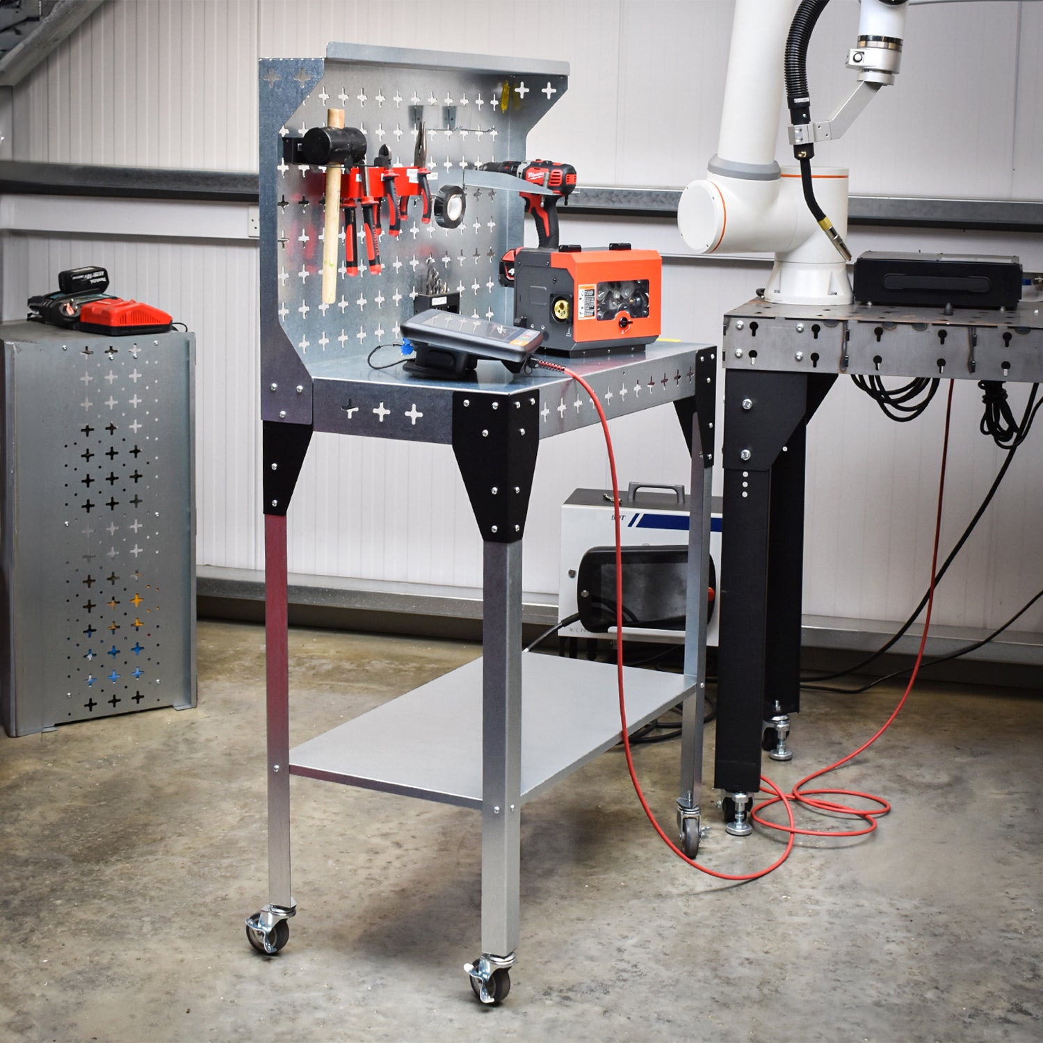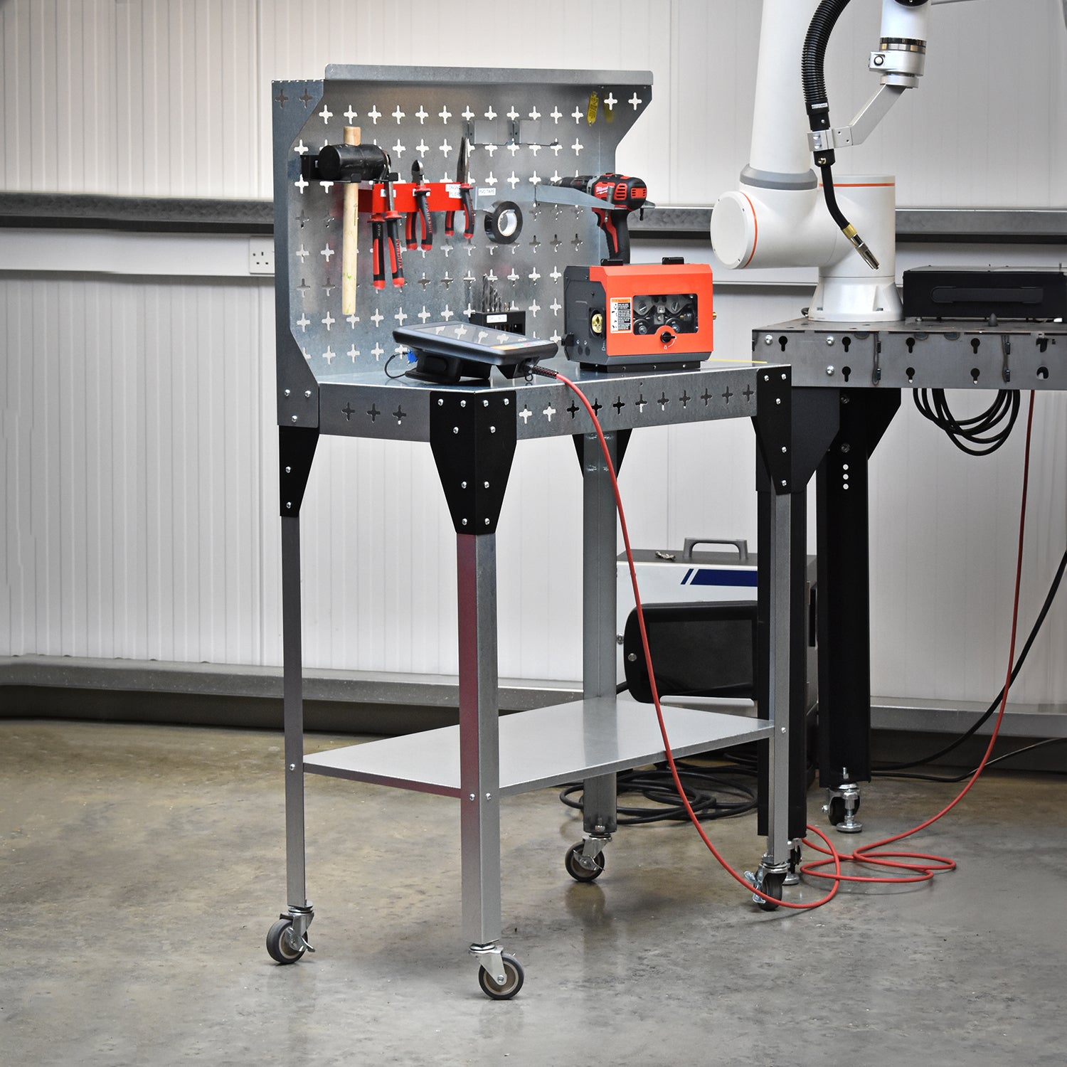 It is great as a mobile workbench, especially in larger businesses where this can be set up as a single-use work cell and moved to where it is needed or moved out when not in use.