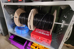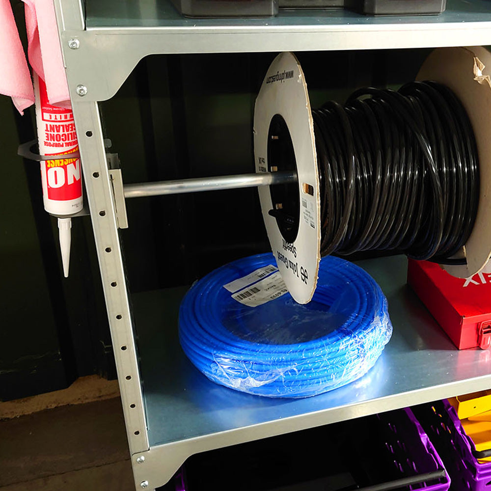 Compatible with our Nukeson Modular Industrial Shelving Unit, this Pole Mounting attachment allows you to mount reels of cable and consumables, inside the shelving unit. The 2 x Tool Wall-compatible clips attach onto the internal sides of the shelving unit and allow the 895mm pole to sit comfortably on top, snugly keeping it in place.