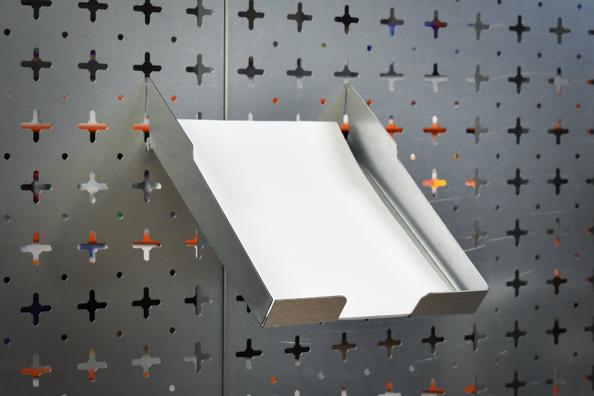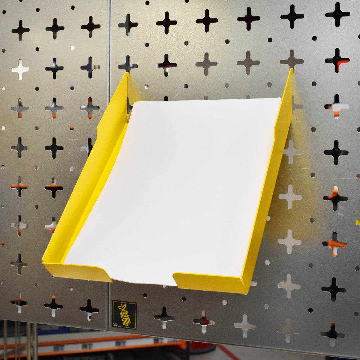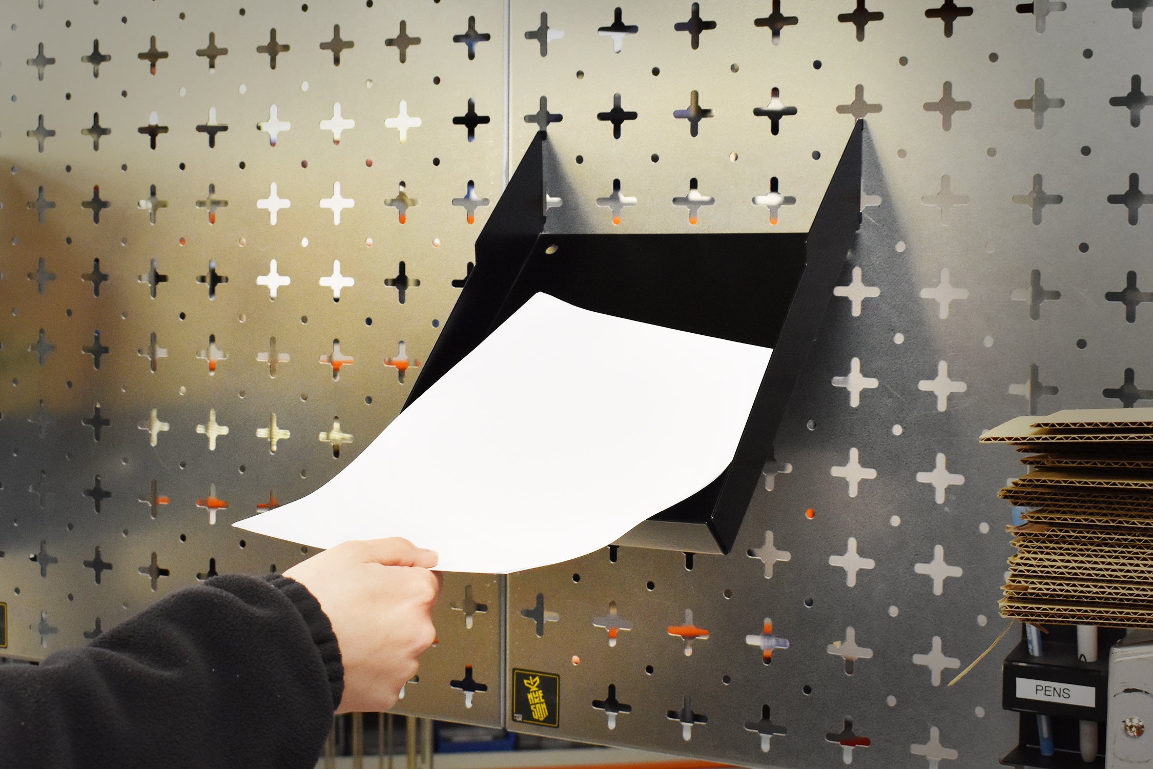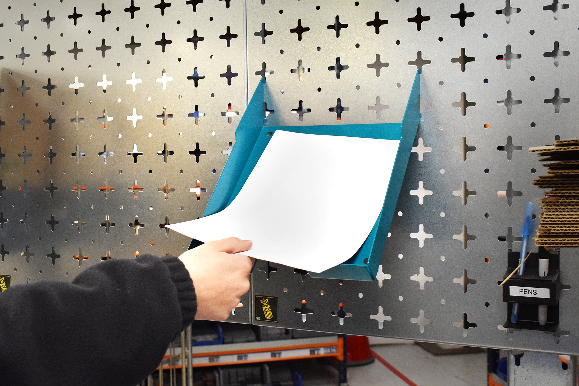 Compatible with our Nukeson Tool Wall Panels, this attachment allows you to store A4 paper at a comfortable position for both viewing and accessing. Whether it be your list of orders for the day when packing at a workstation, keeping track of your leaflets and instruction sheets, or just keeping a spare pad of paper for when your printer runs out.