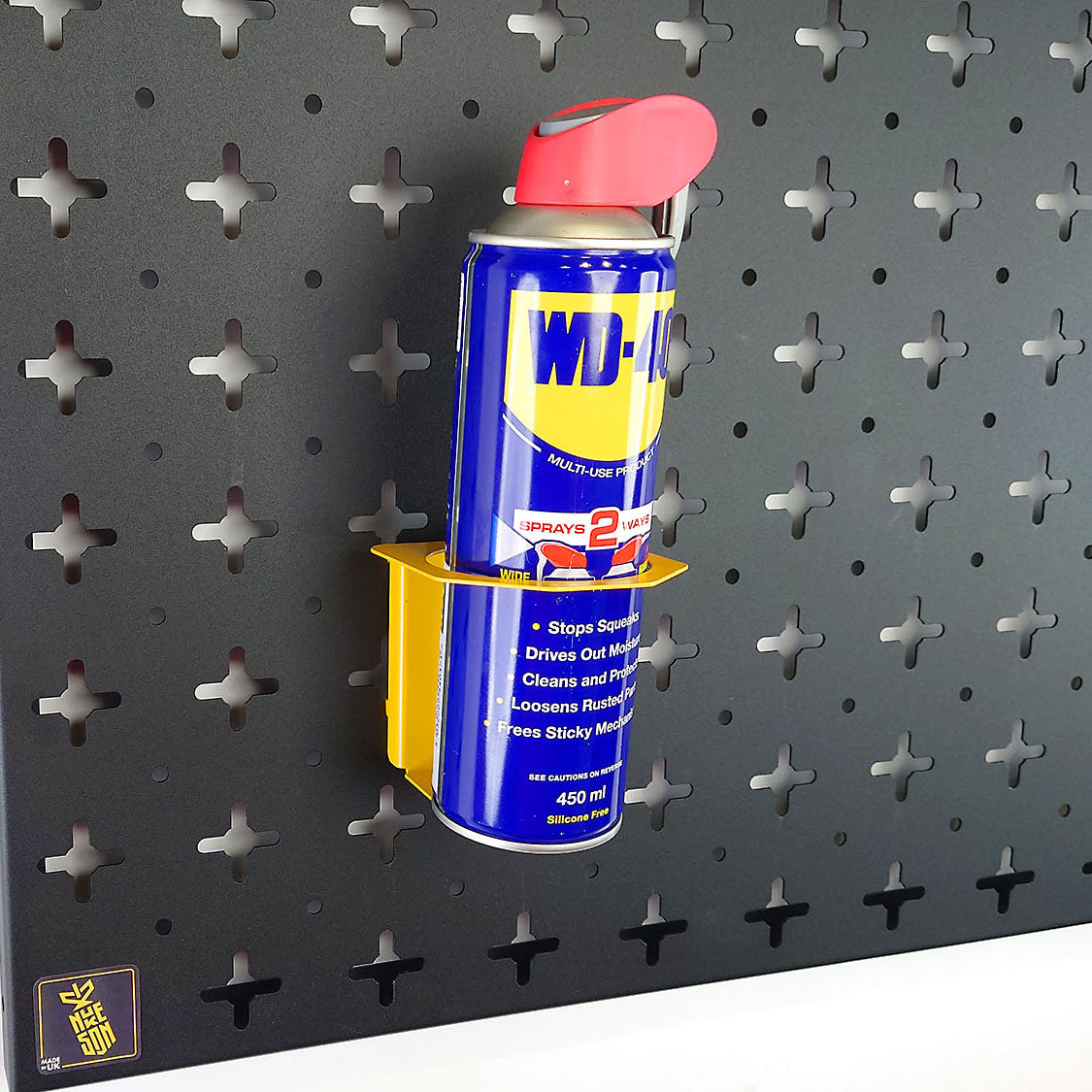 Compatible with our Nukeson Tool Wall Panels, this attachment allows you to store a single aerosol can. The bracket can store any Aerosol Can or bottle with a max diameter of 63mm, meaning it will fit most cans of WD-40, Air Freshener or Air Duster. If you regularly use aerosols in your job, whether polishing your workstation, spraying paint or just performing general maintenance with WD-40.