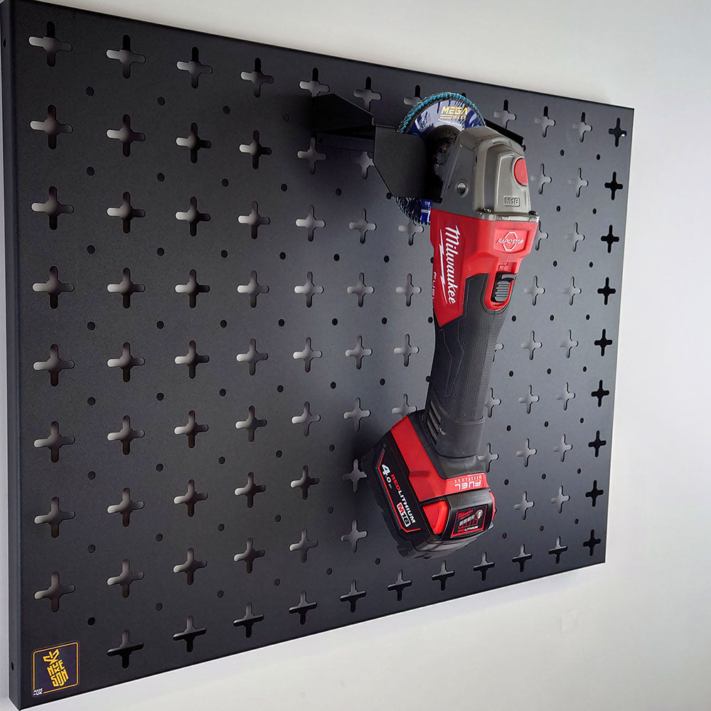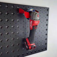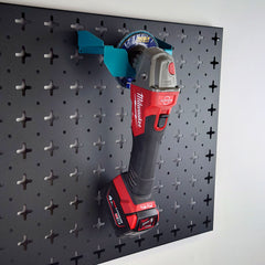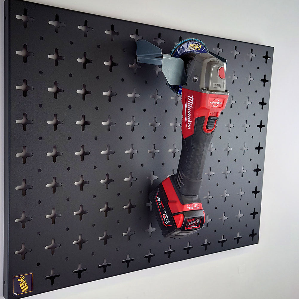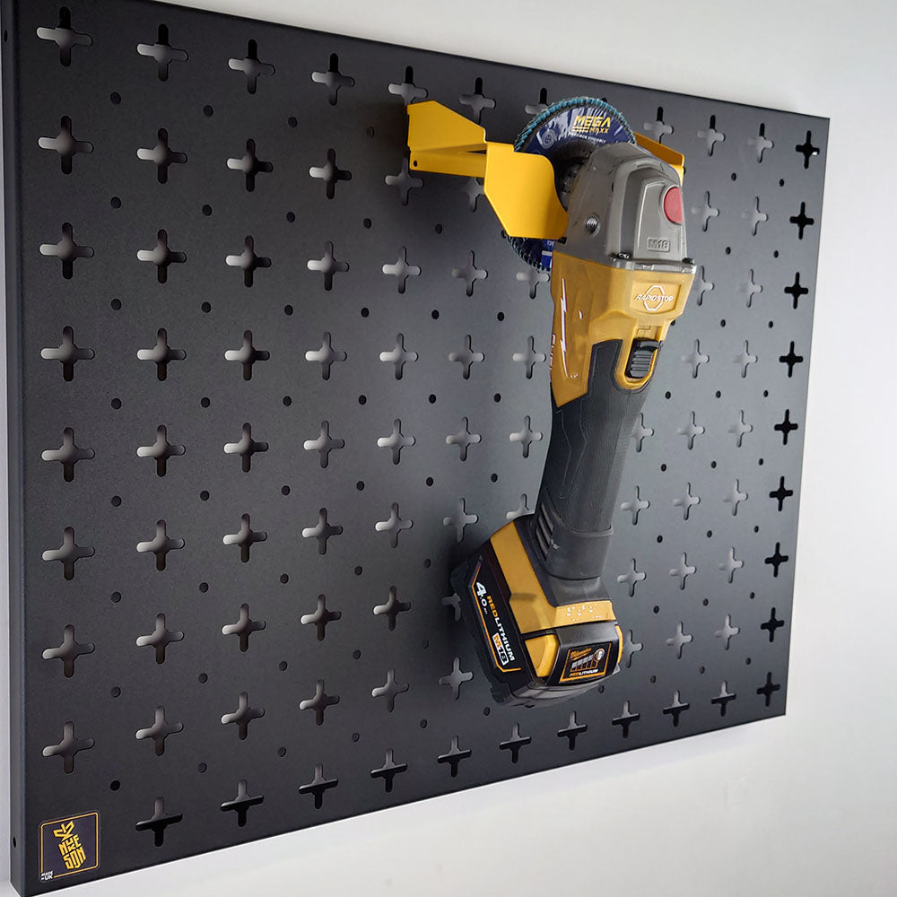 Compatible with our Nukeson Tool Wall Panels, this attachment allows you to store a single Angle Grinder. The lip of the bracket is specially crafted to support the guard of the grinder, ensuring that it stays securely in place when not in use.