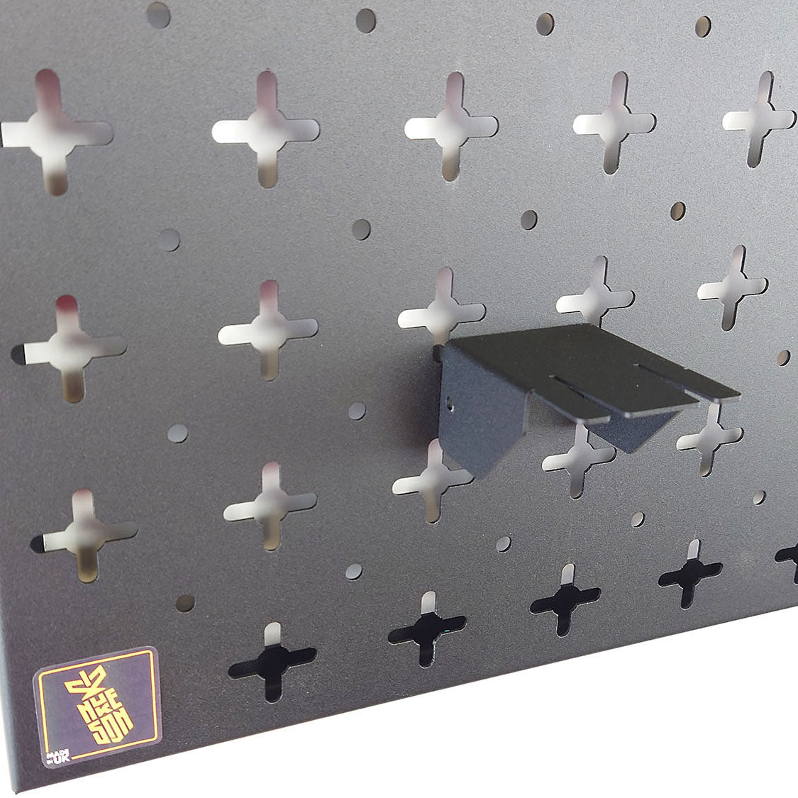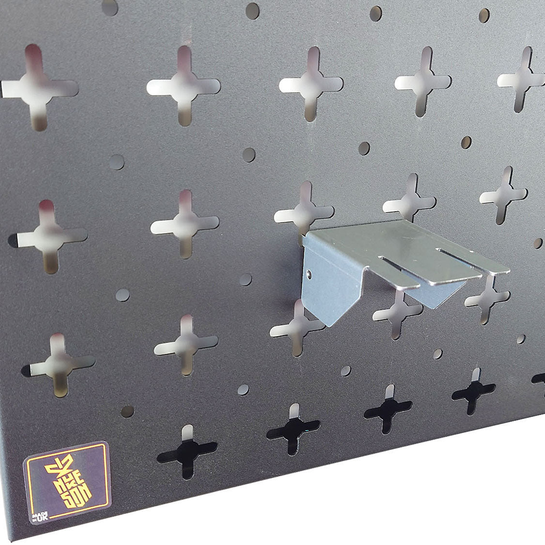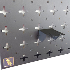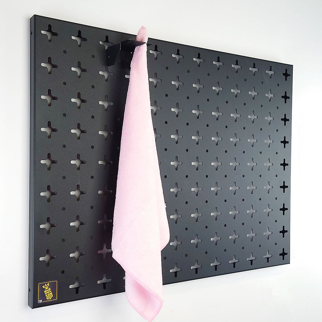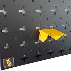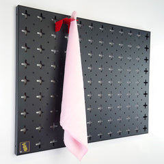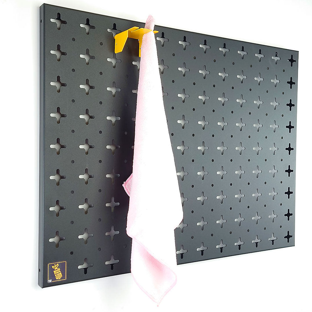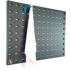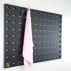 Compatible with our Nukeson Tool Wall Panels, this attachment allows you to store 2 cleaning cloths. Having a cloth handy can sometimes be a problem, they're the other end of the factory, they've been left on the floor, they're just lying around on the machinery. This bracket allows you instead to store 2 cloths or rags on the wall exactly where they are needed. The cloth can simply be inserted into the slot and left to dangle, being easy to remove when you need it.
