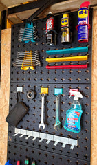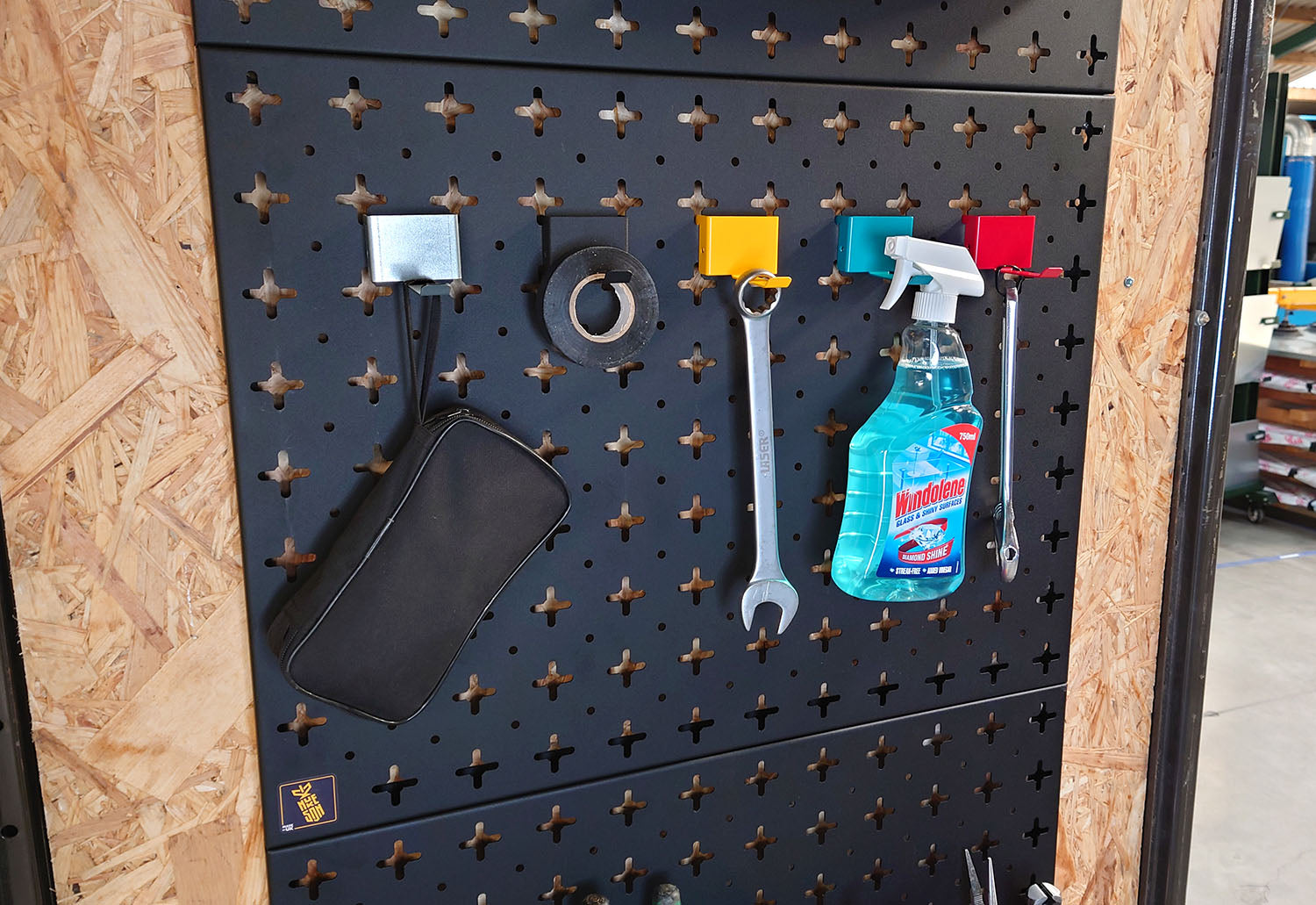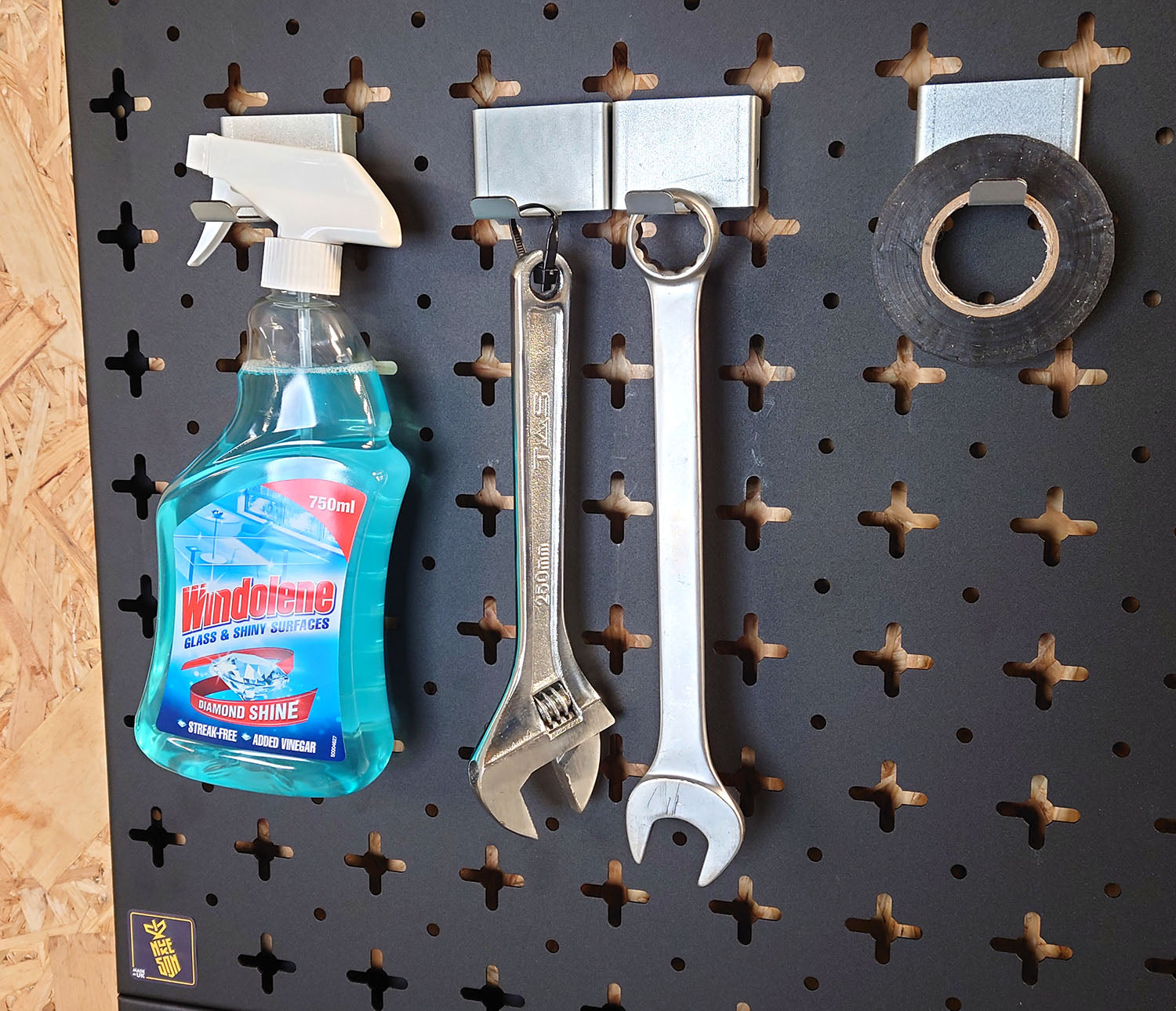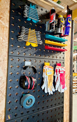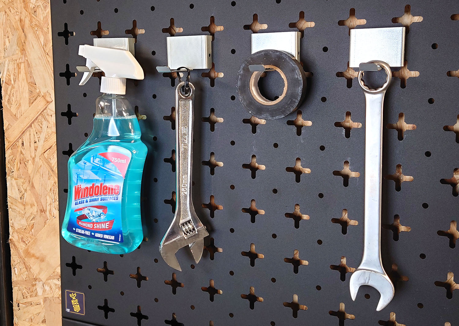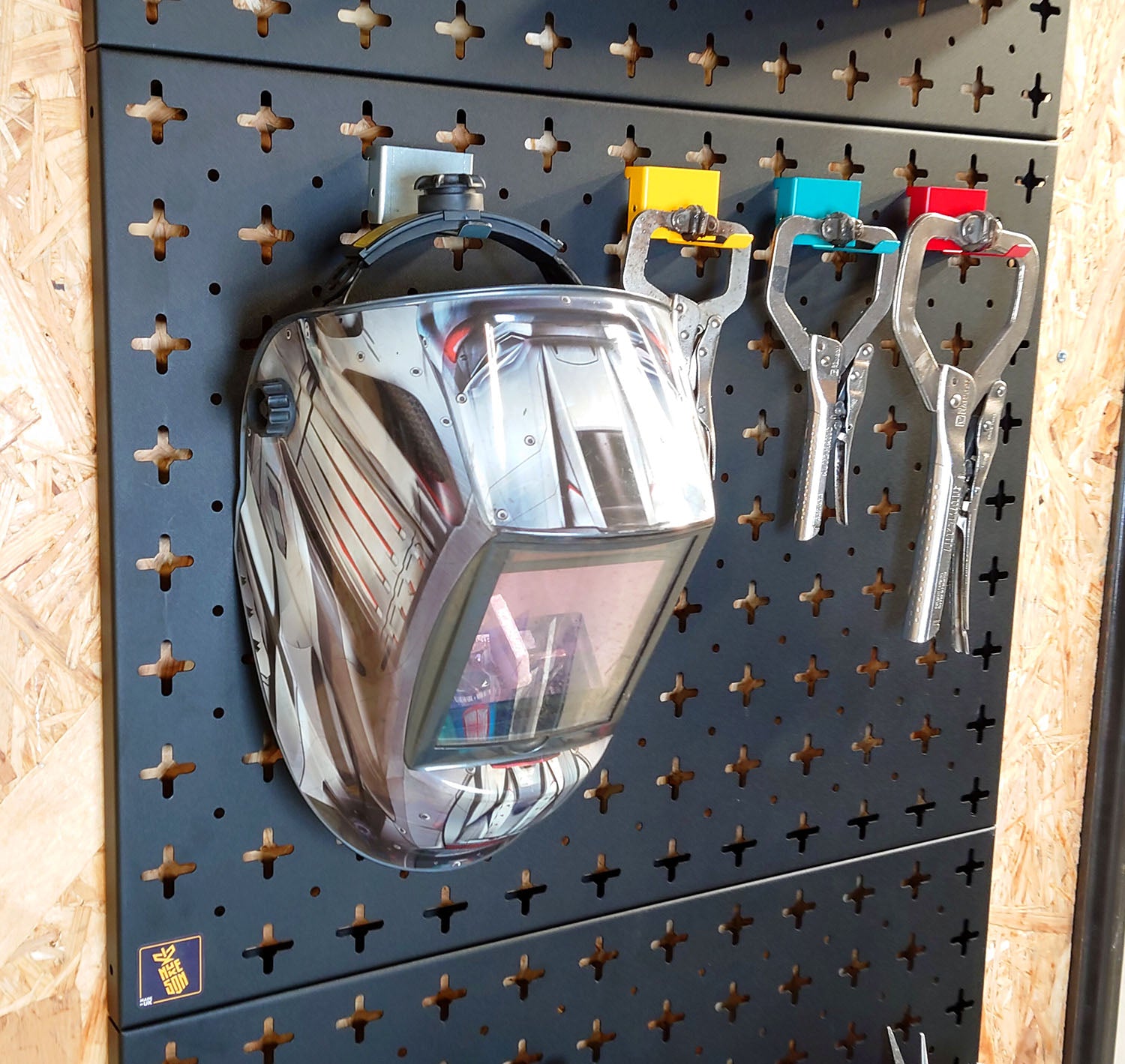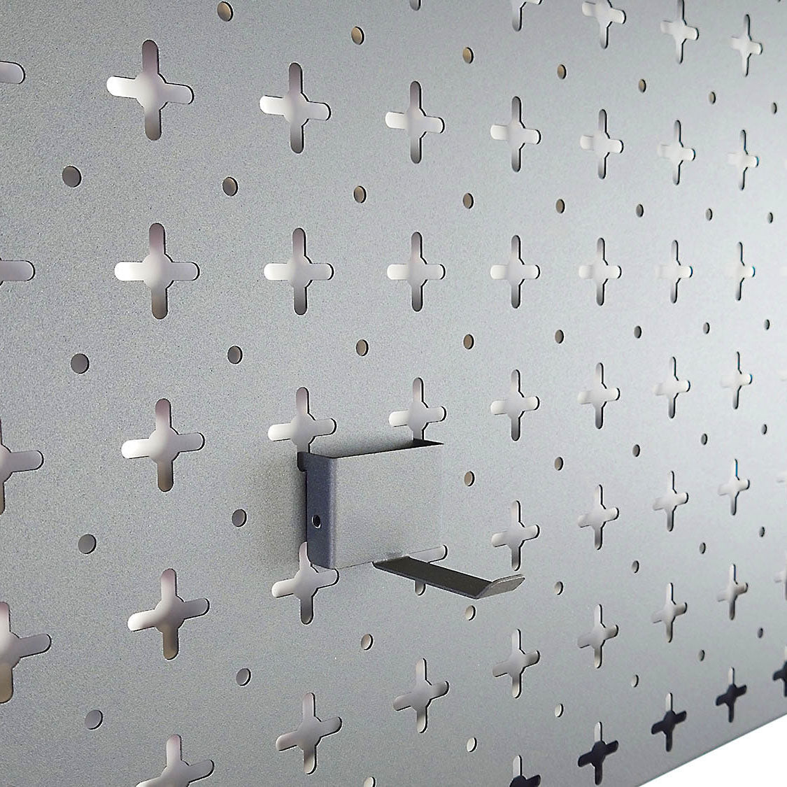 Compatible with our Nukeson Tool Wall Panels, this attachment allows you to store Angle Grinder cut discs and flap discs. It can hold up to 4 standard-size flap discs on a single hook. The hook itself can be multi-purpose too, allowing you to hook on pretty much any tool or supply with a lip suitable for hanging.