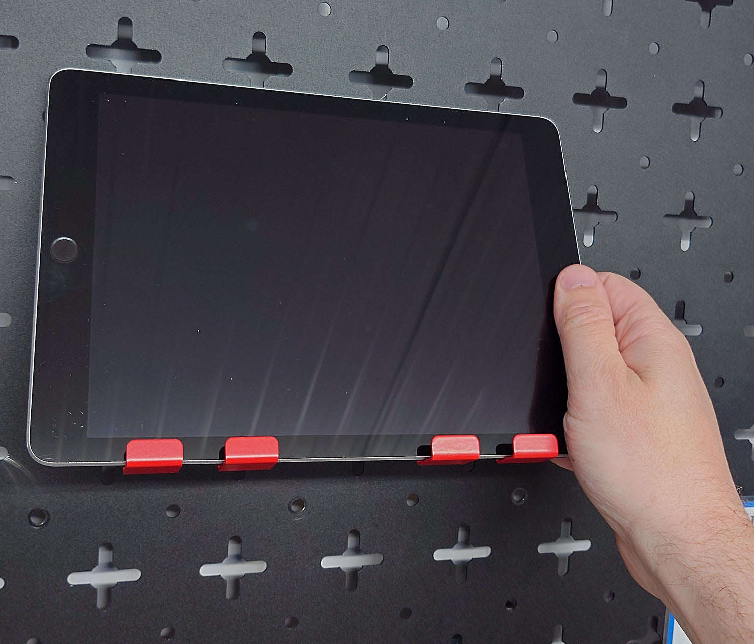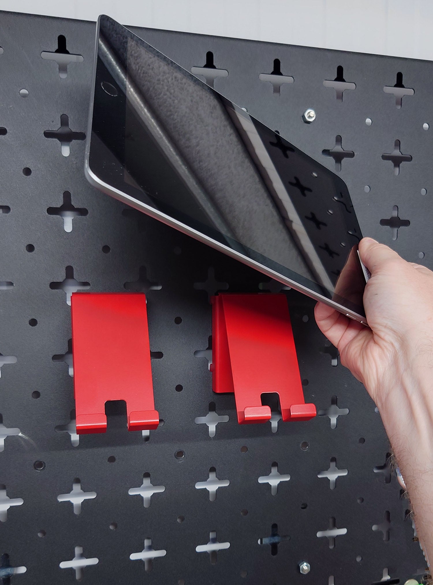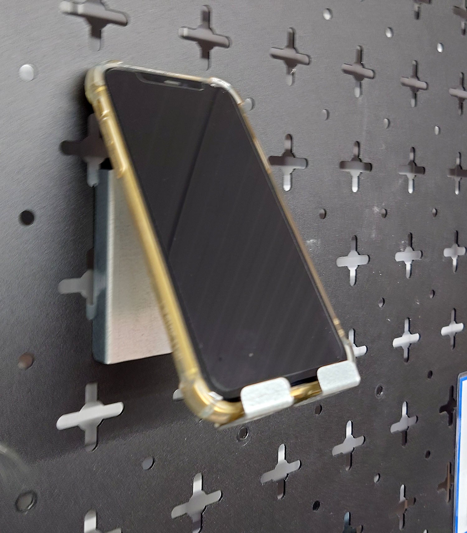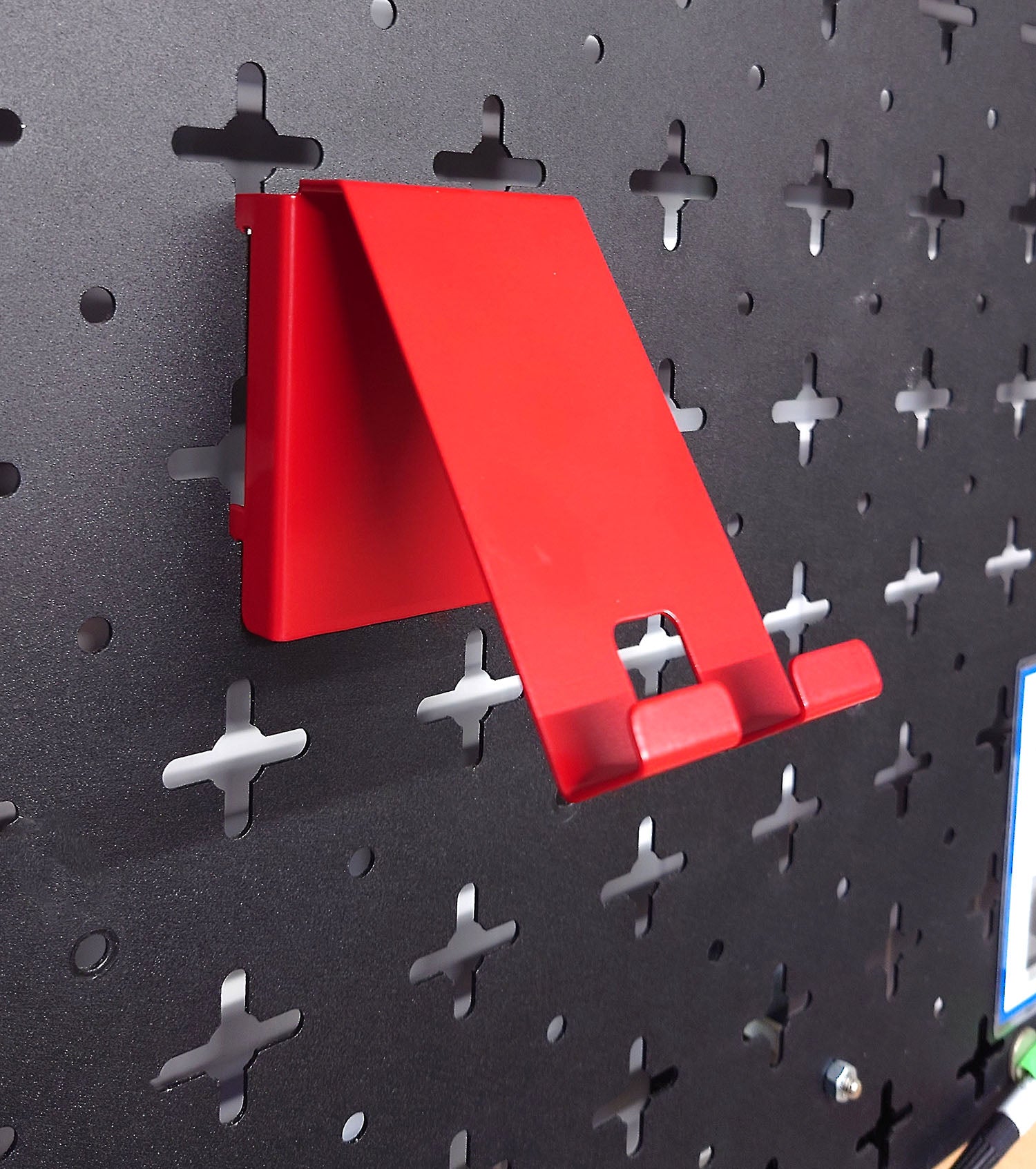 Compatible with our Nukeson Tool Wall Panels, this attachment allows you to conveniently display your mobile phone whilst working. Whether reading instructional guides hands-free, checking out some details for whatever you're working on, or even just having somewhere to change the music without physically having to pick up the phone, this can be a great addition to any existing tool wall. Not designed for any particular area of business, this would be just as home in an office, as it would be in a workshop, paint shop or warehouse.