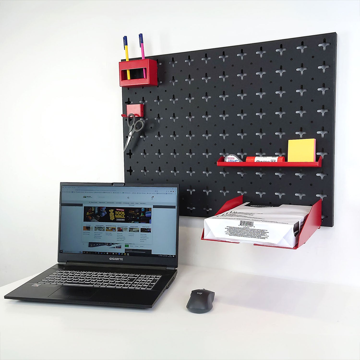 This starter kit will introduce you to the amazing collection of Nukeson Tool Wall Organiser Products. This kit features items for the office and your administration areas. The starter kit contains places to store paper and stationery and is a great way to start bringing the same level of cleanliness, tidiness and efficiency as your factory, to your offices.