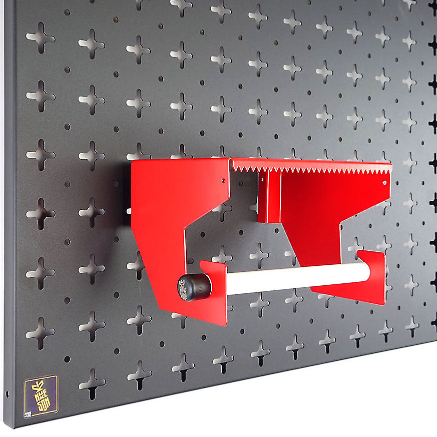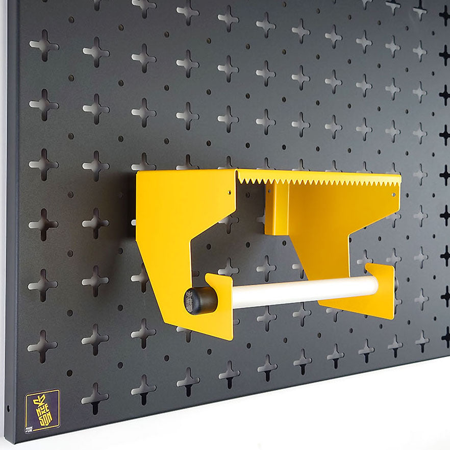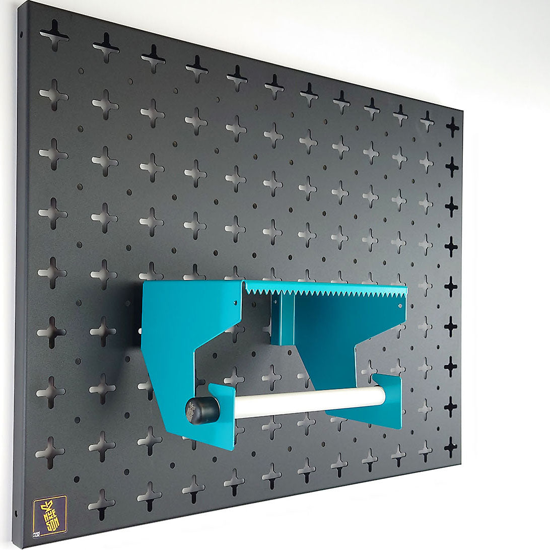 Compatible with our Nukeson Tool Wall Panels, this attachment allows you to store and easily dispense Blue Roll. To operate, simply pull the Blue Roll to the desired length, then use the small serrated edge on the shelf to tear the sheets off.