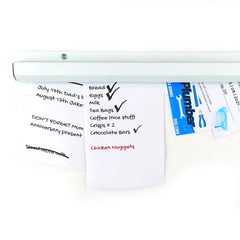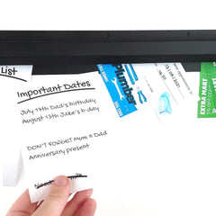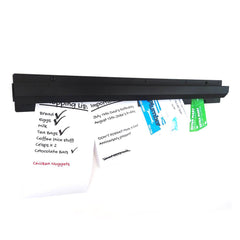 You know those things that they keep the orders on in restaurants? Where the staff just slide it upwards and the metal clamps it tight? It's called a Tab Grabber. We've made one that you can use in the kitchen now! This can replace your pin board and stop you putting pin holes in your paper! Perfect for holding paper, notes, coupons and more, the Okunaii Marble Rail uses marbles inside a steel casing to clamp paper and notes tightly.