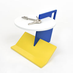This organiser is made from heavy-duty 5mm British steel. This provides durability but also a pleasing thick appearance. The organiser is powder-coated in multiple colours to create a visually pleasing work of art. Inspired by key colours from the Bauhaus movement, it features Yellow, White and Blue tones.