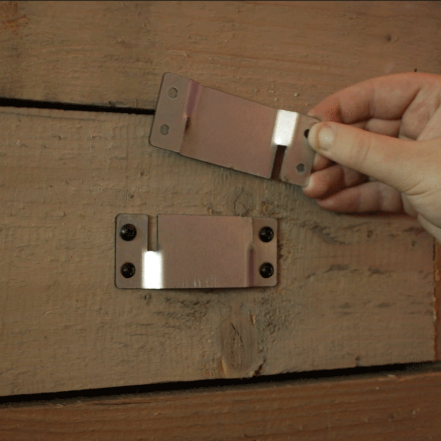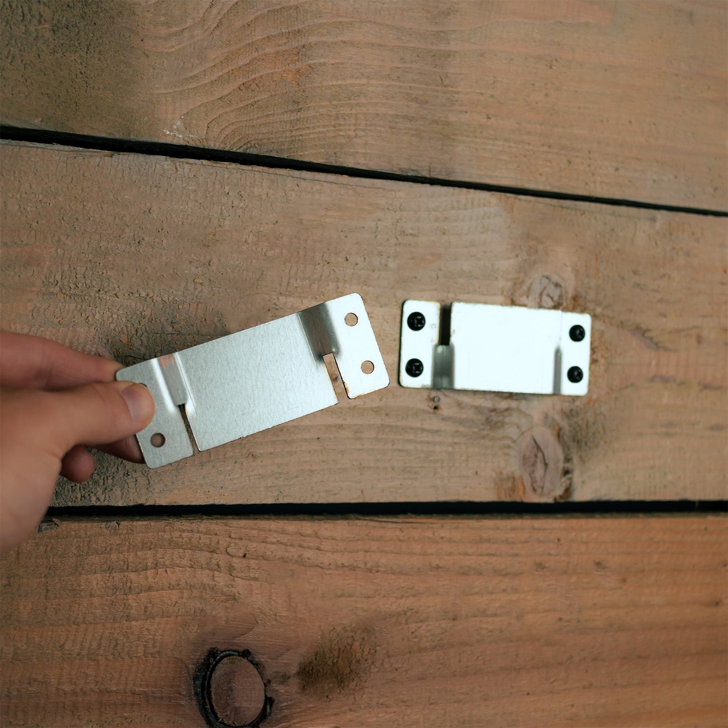 Do you need to hang something on the wall, but need it to be a little more heavy duty than a couple of screws? These Flush Mount wall hanging brackets are inspired by furniture connector clips and allow you to hang heavier picture frames and ornaments in your home, where they can easily be lifted off when needed.. Simply screw one to the wall, and then screw the other one to the item, and then slot them over each other. They interlink together for a strong install, which is easy to remove when needed.