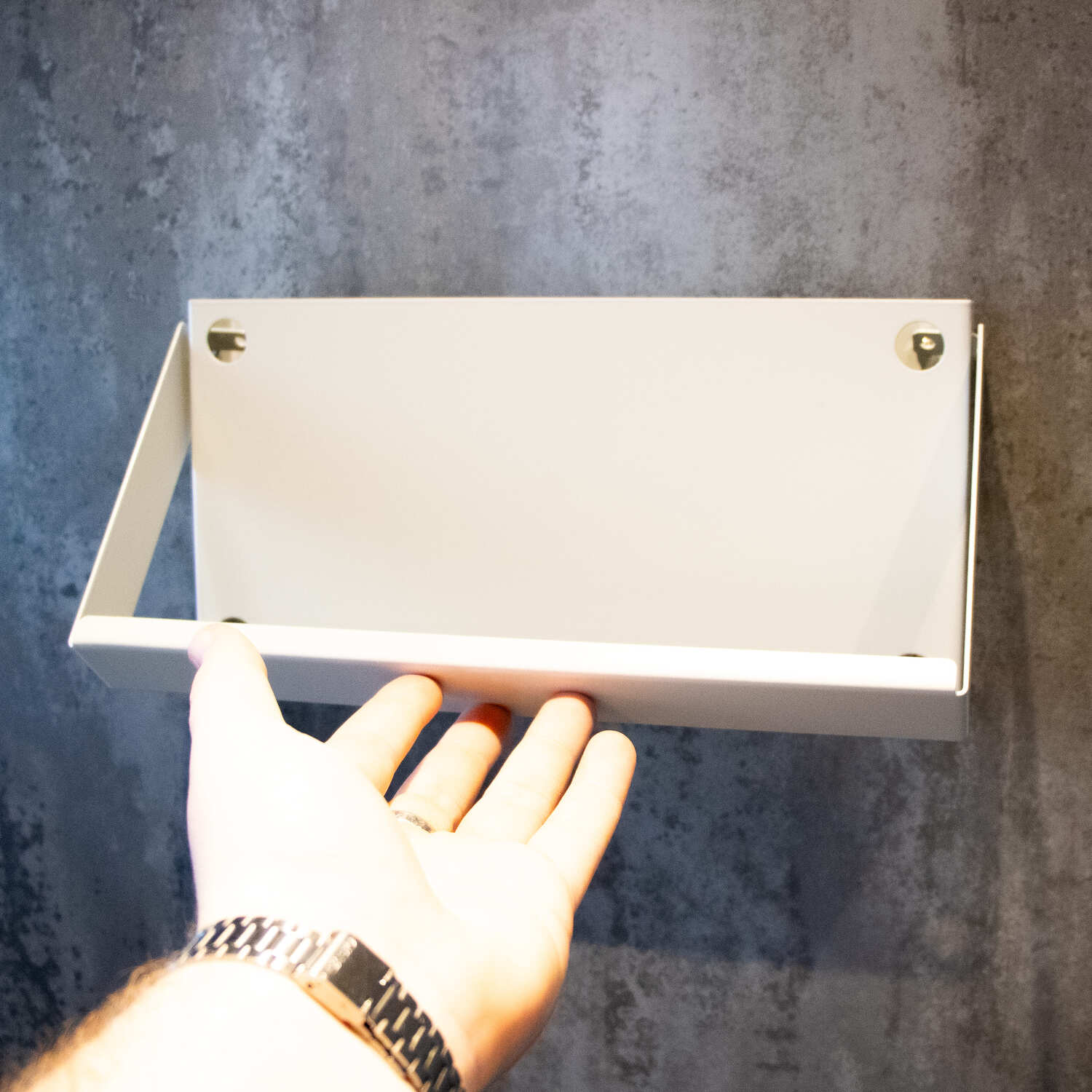 Made from strong British steel, the frame is lightweight but sturdy. It’s designed with ease of use in mind – the arm can be temporarily removed to simplify installation, and there are holes on the front panel to allow your drill bit to pass through directly for simple wall mounting. Once installed, the swinging bar drops perfectly into place every time.