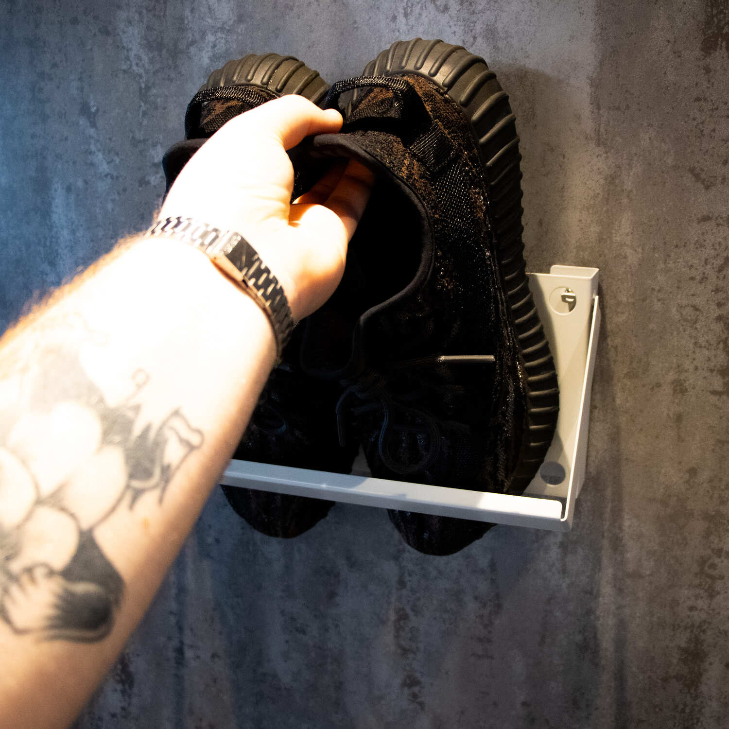 Keep your footwear tidy and off the floor with the Okunaii™ Wall Mount Shoe Rack & Organiser – a smart space-saving solution designed for smaller homes, hallways, entryways, or wardrobes. This clever wall-mounted shoe holder uses a pivoting arm to hold your shoes securely in place, making it ideal for trainers, flats, and everyday footwear. Simply lift the bar, place your shoes on the panel, and drop the arm down – it “clamps” your shoes neatly against the wall for easy access and a minimalist look.