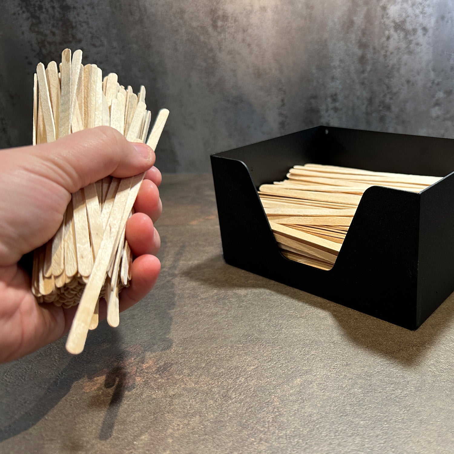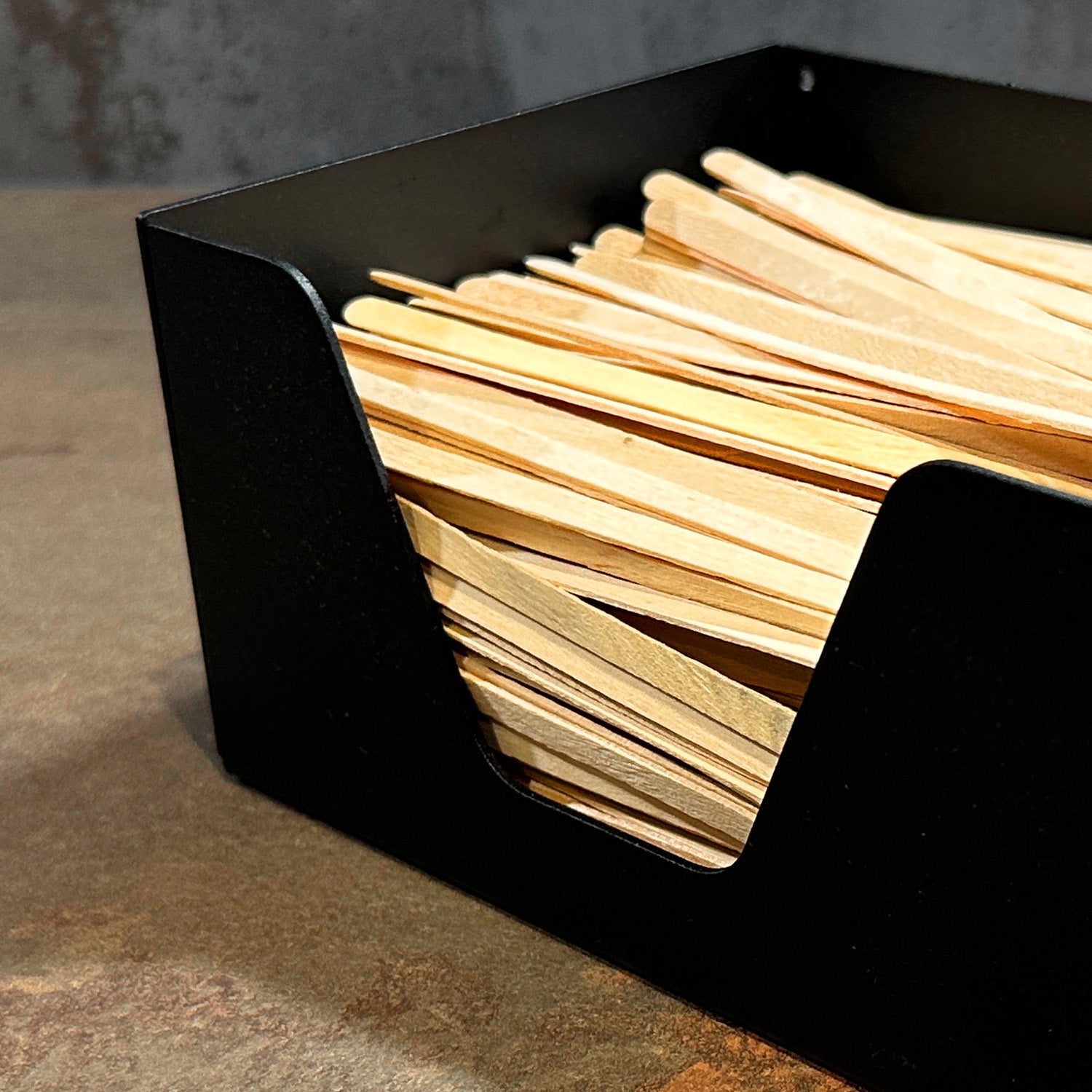 The modern, minimalist design is ideal for homes, cafés, meeting rooms or shared break areas. Just place it on your worktop, fill it with stir sticks, and it’s ready to go. The single open compartment is suitable for stirrers up to 5.5 inches long and can also hold small straws or cocktail accessories. A curved cut-out at the front makes it easy to take a stirrer, even when the holder is nearly empty.