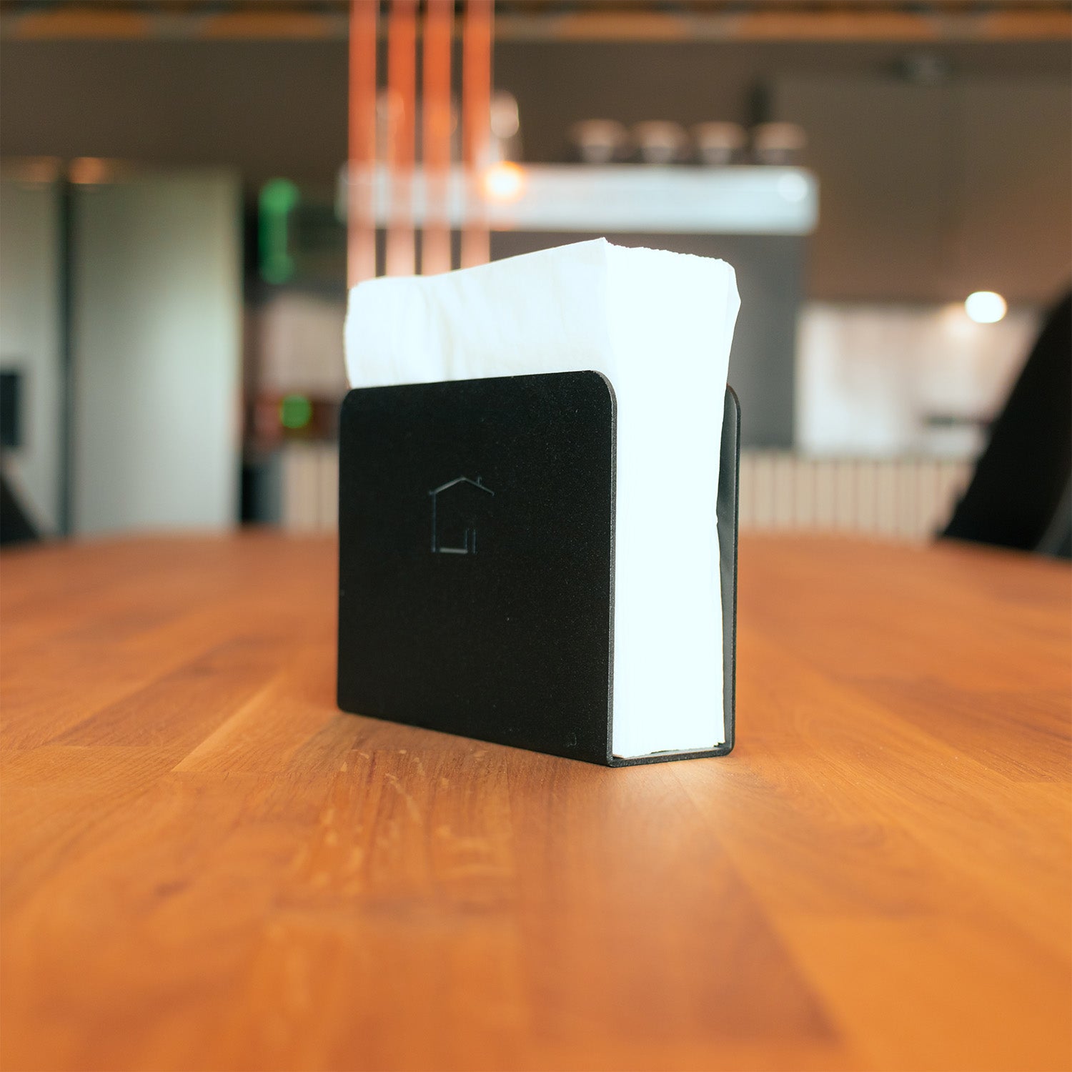 Looking for a stylish way to keep some napkins on the dinner table? This Tabletop Napkin Holder from the Okunaii collection provides stylish and sleek storage for up to roughly 40 napkins.