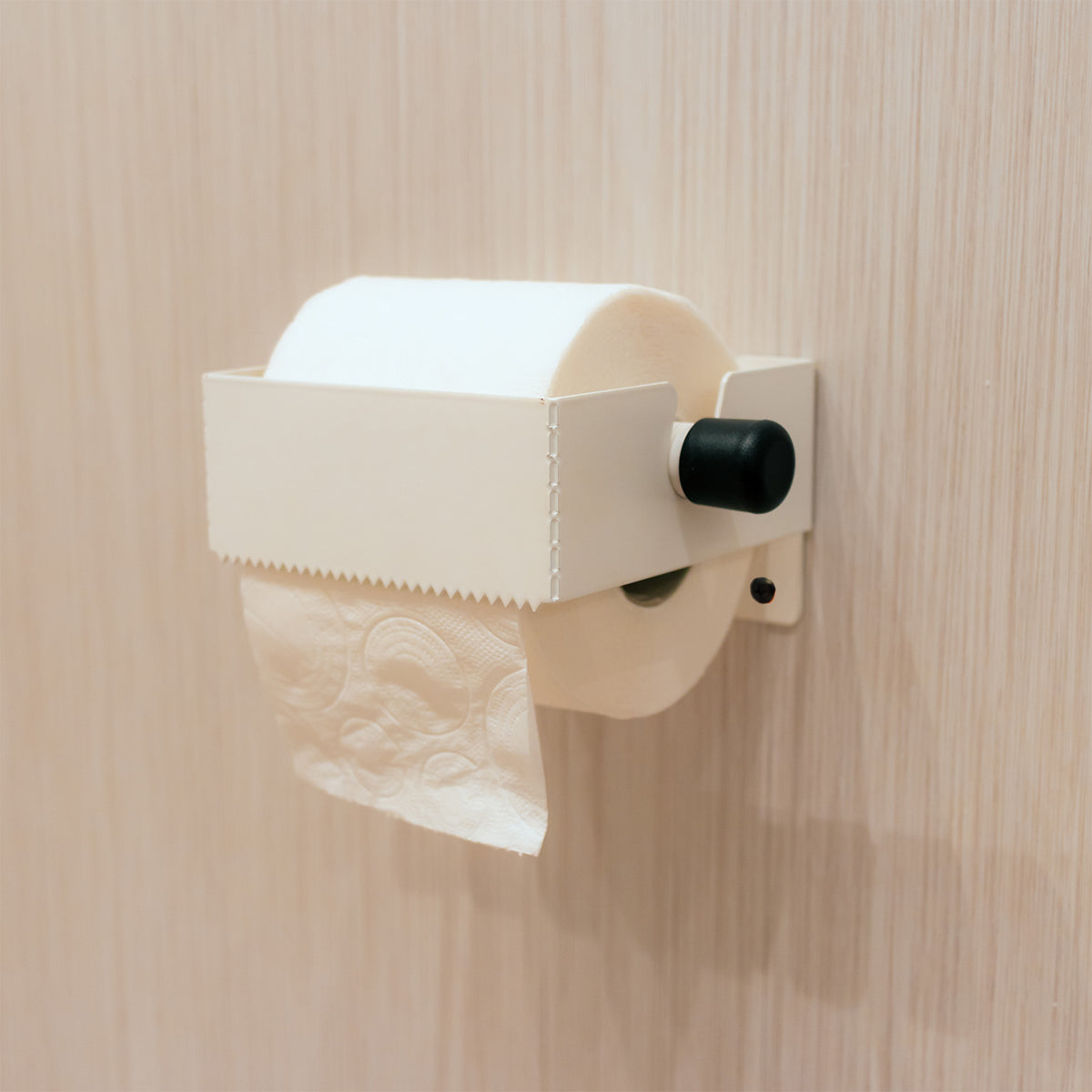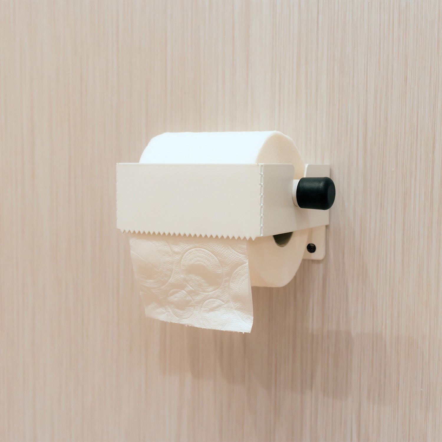 Want to tear off a sheet of Toilet Roll but not touch the rest of the roll? The Tear-Away Toilet Roll Holder from Okunaii achieves this. The teeth on the Holder enable paper to be easily torn off the roll. No holding the roll, no need for a brake. Simply grab the end of the roll and use the teeth to tear off a sheet.