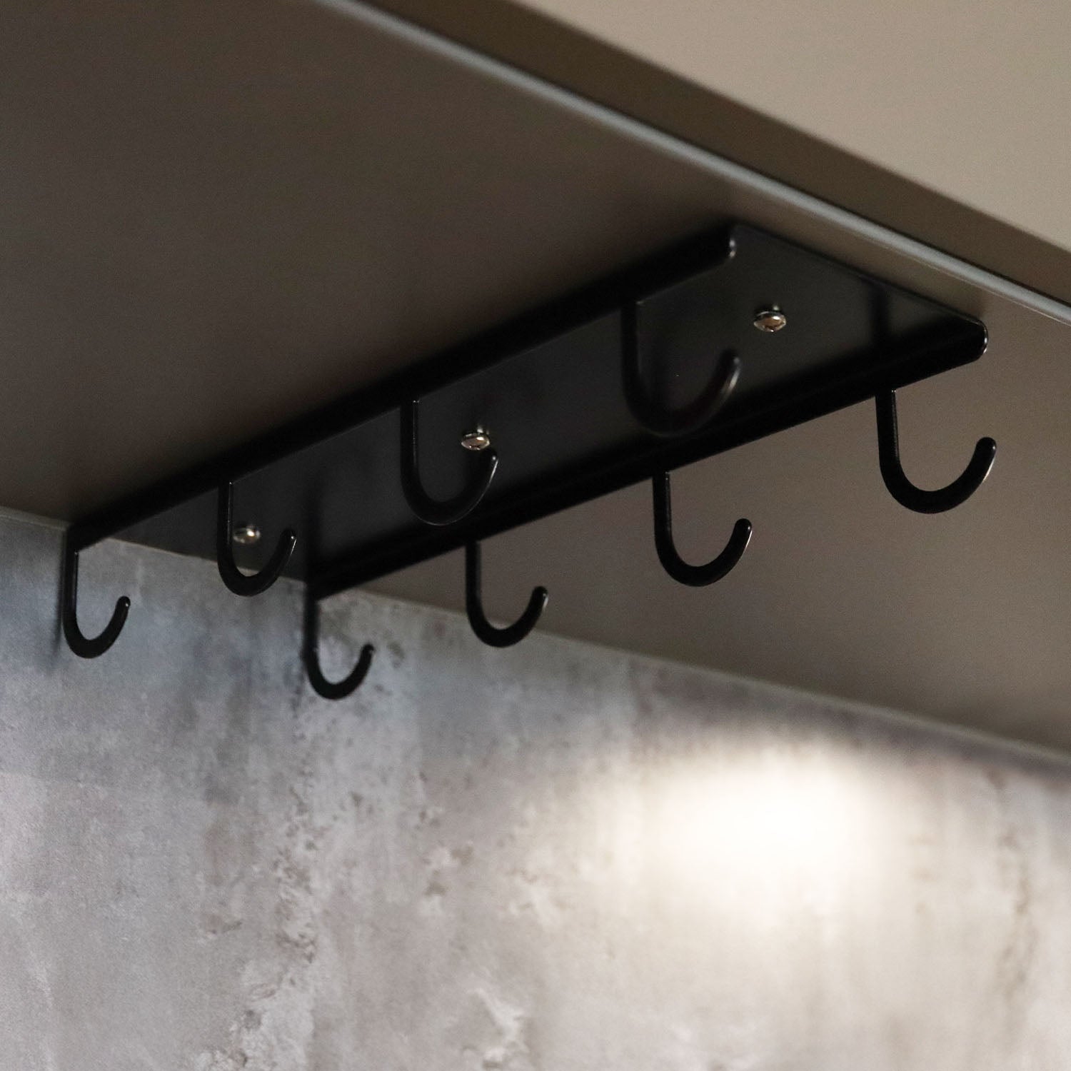 Installation is simple, requiring just three screws to securely mount the holder under any cupboard. The hooks are perfectly spaced to hang mugs by their handles, allowing for easy replacement and retrieval. Position the holder close to your kettle or coffee machine for maximum convenience during your daily routine.