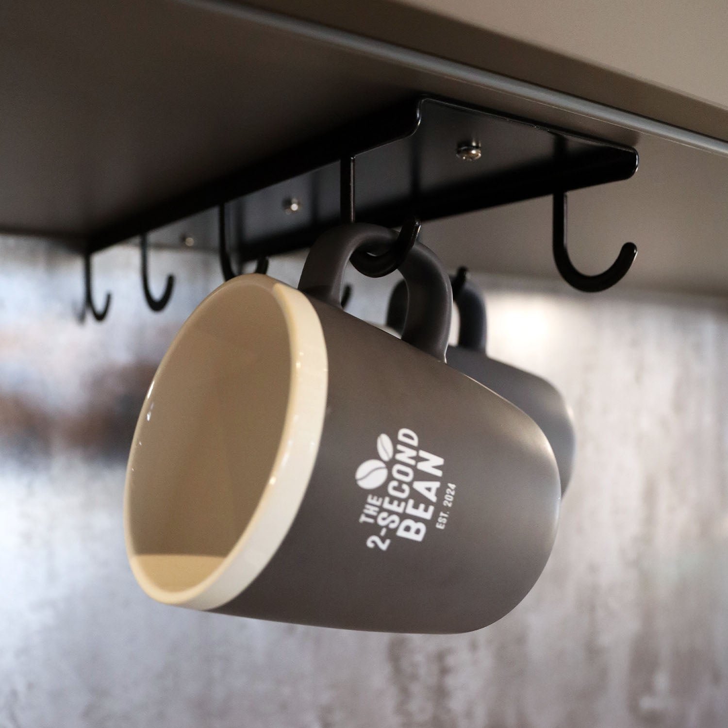 Proudly designed and manufactured in the UK, this coffee mug holder combines practicality, quality craftsmanship, and minimalist design, making it an essential addition to any kitchen. Keep your mugs organised and accessible with the Okunaii Under-Cupboard Mount Coffee Mug Hanging Holder – a sleek and functional addition to your kitchen.