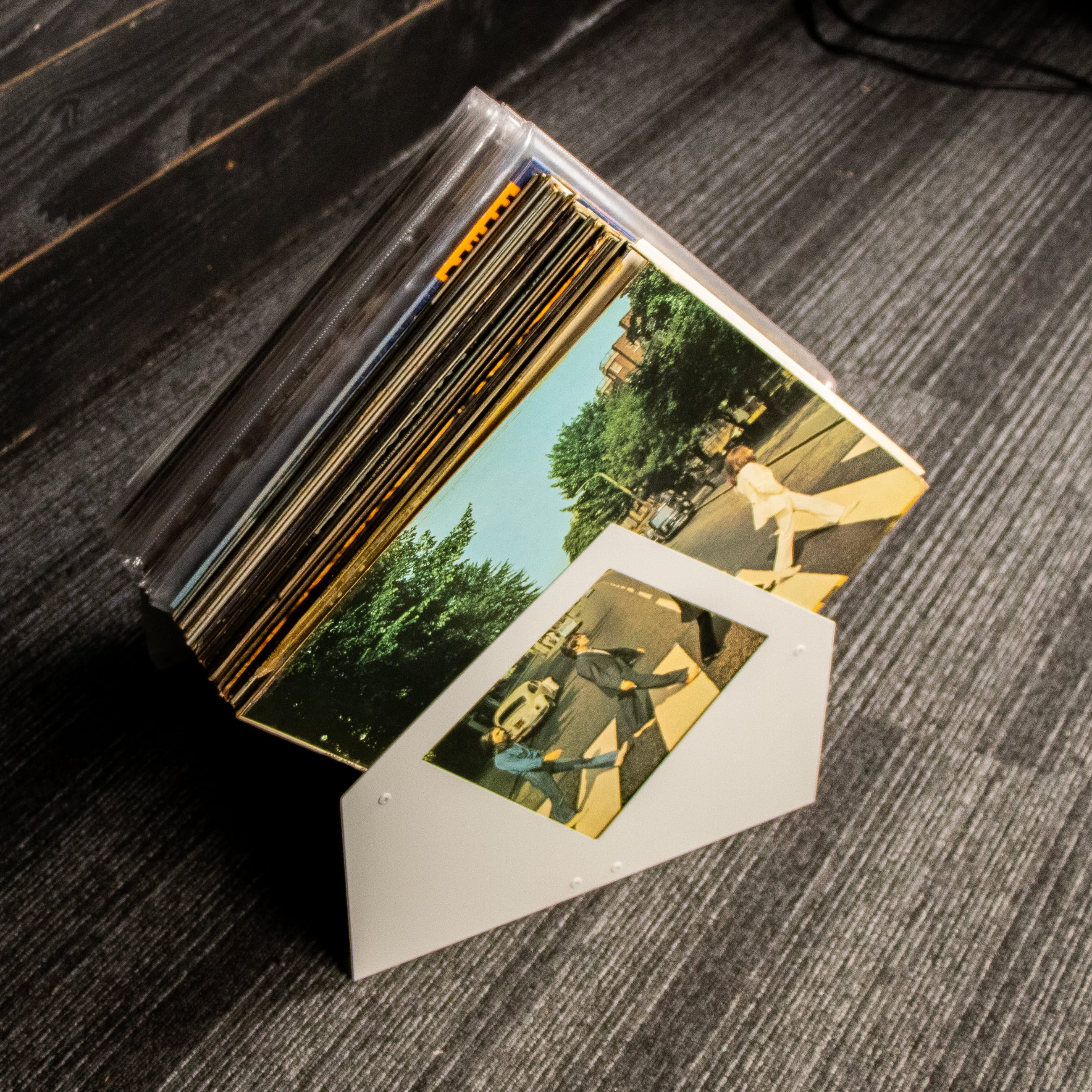 The open design keeps your records tidy and accessible. There’s no installation required – simply place it next to your turntable or on a shelf and start using it straight away. The angled supports hold both sides of your records for balanced support, while a lip on the base provides extra strength and ensures stability, even when the unit is full.