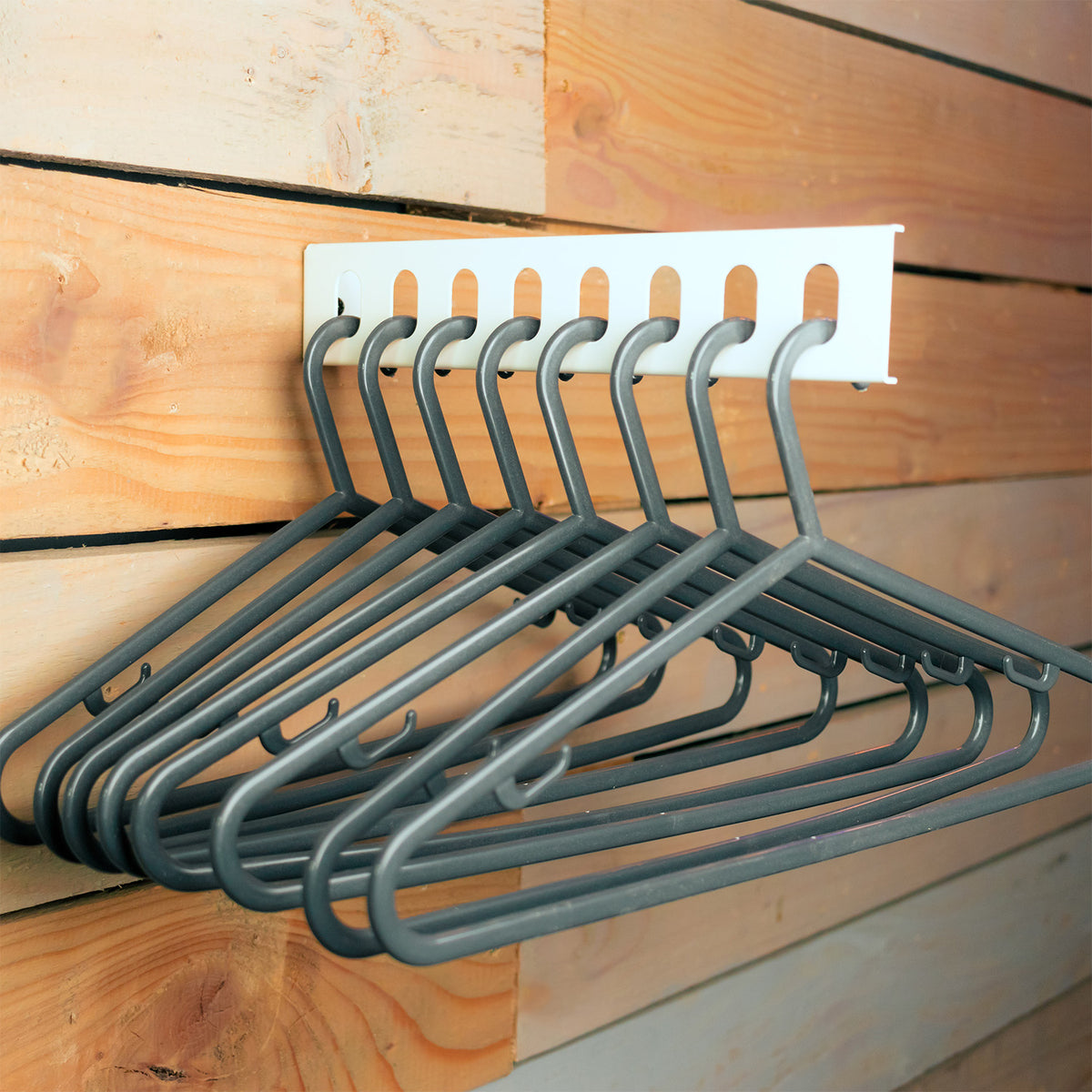 The bracket has been designed to work with most UK standard size coat hangers. Each hole is spaced far enough apart to allow the clothes to not touch whilst drying, allowing them ample air space to dry quickly. This bracket is perfect for use in backplaces, laundry rooms or even on balconies in flats.