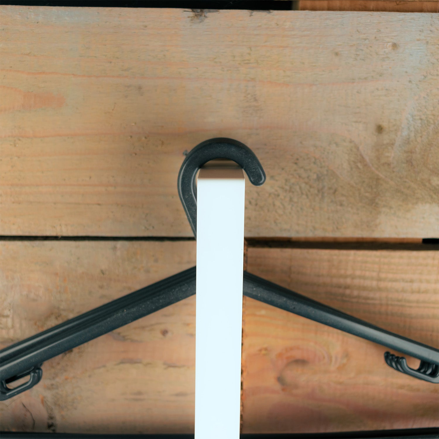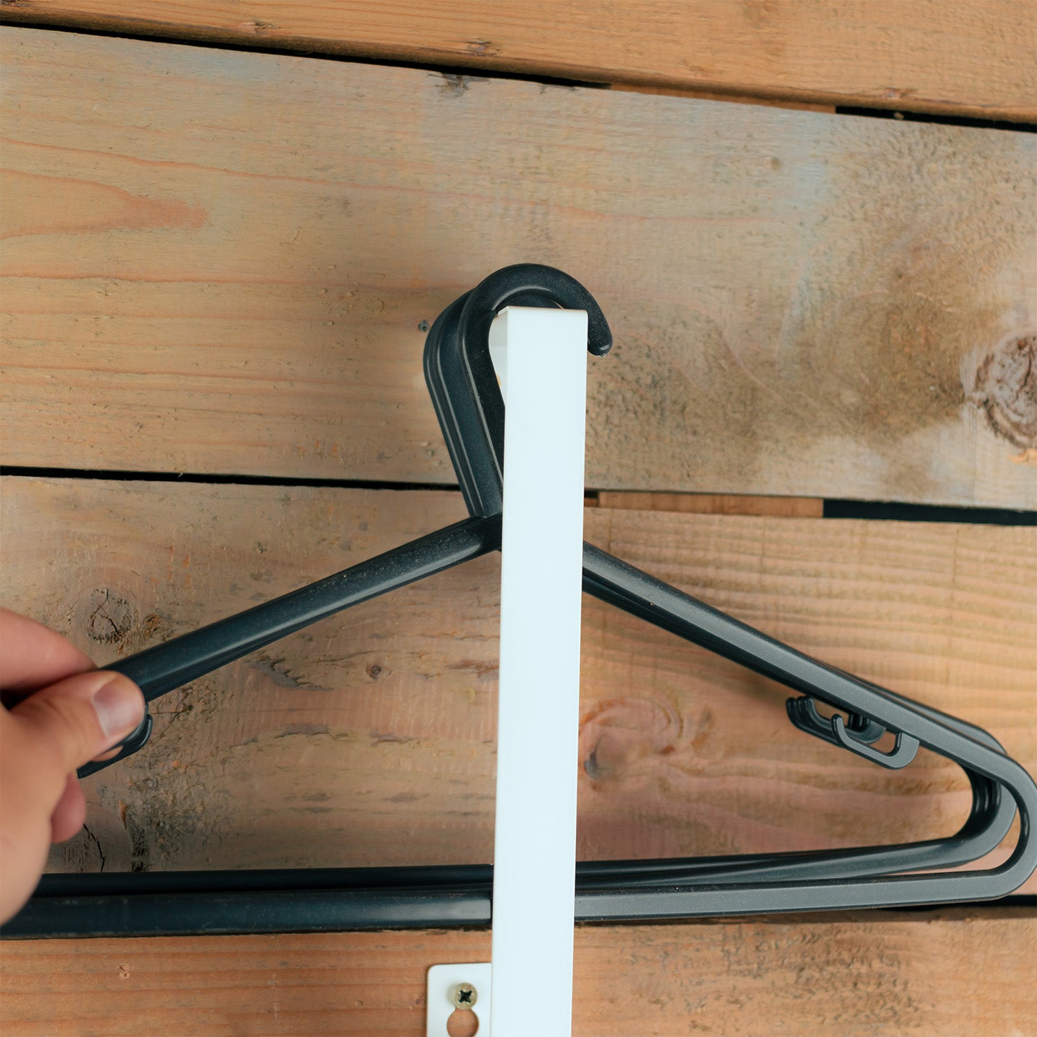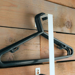 Install this wherever it is needed and then you can slot your coat hangers on both the top part and the lower part. Simply hang them on the metal, and allow the front bar to stop them from from slipping off. The bracket has been designed to suit most UK coat hanger sizes.